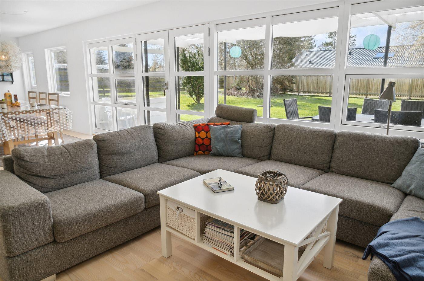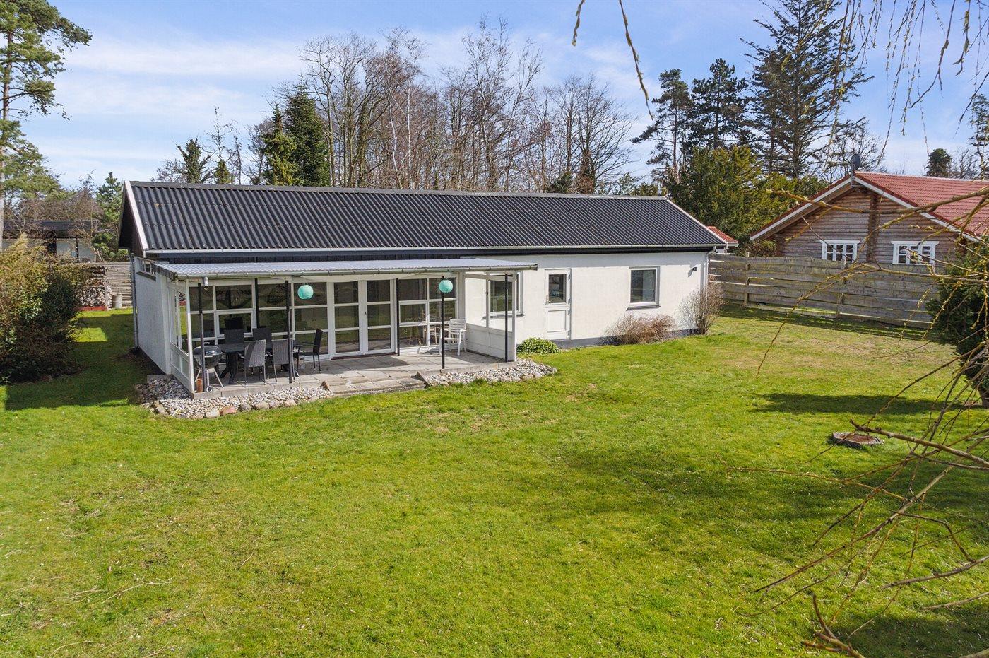 Ferieboligen er beliggende på en 1200 m² stor naturtomt. Avstand til hav er 200 m. Nærmeste butikk ligger i en avstand på 1300 m. Til ferieboligen hører åpent terrasseareal. I tillegg er det overdekket terrasse. Det er Redskapsrom. Sandkasse. Bålplass. Det er grill til rådighet. P-plass ved huset.