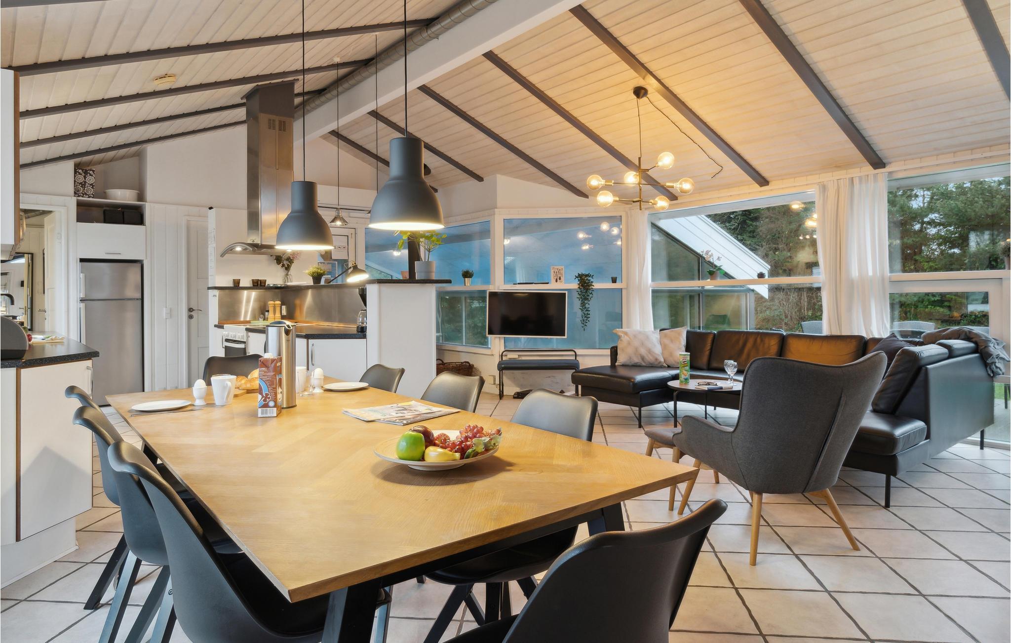 Dette feriehuset ligger bare en kort spasertur fra sentrum av feriebyen Marielyst, hvor en rekke shoppingmuligheter og eksepsjonelle ferieopplevelser venter på deg. Det er veldig godt egnet for en familieferie eller en ferie med venner. Uten tvil er badeområdet med et stort basseng og et 2-3 pers. boblebad sentrum av huset. Huset er veldig koselig og innredet i lyse og vennlige farger. En annen oase av velvære er den koselige peisen, og et av badene har også en badstue. Stuen vender ut mot en stor sørvendt terrasse. Her har du: golfbane, eventyr med bowling, skyting, paintball og gokart.