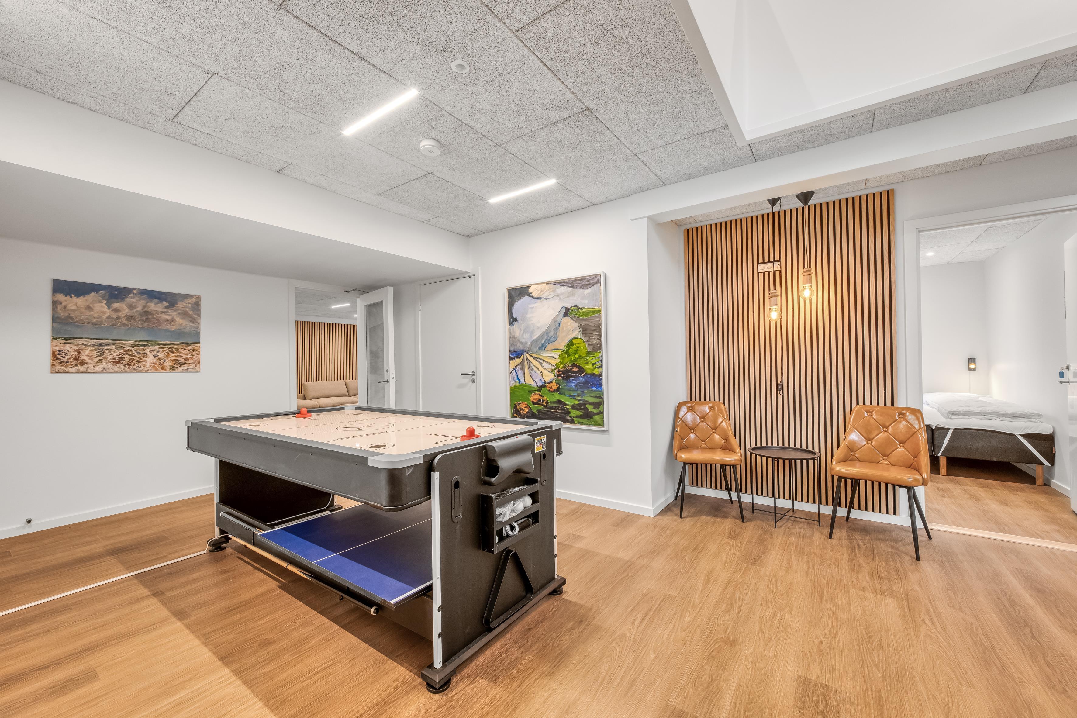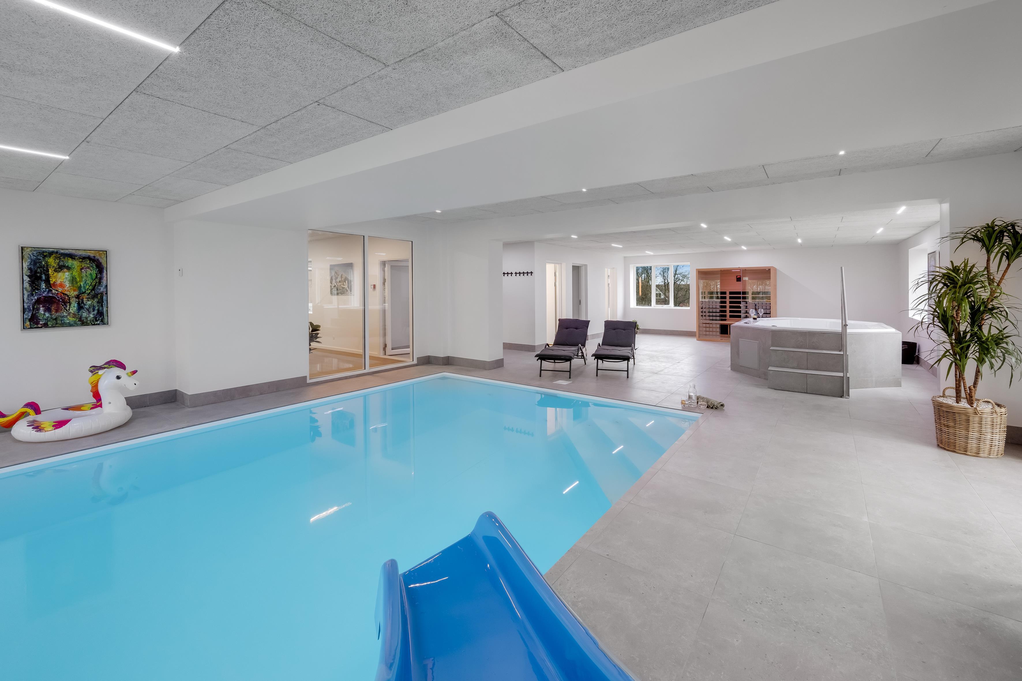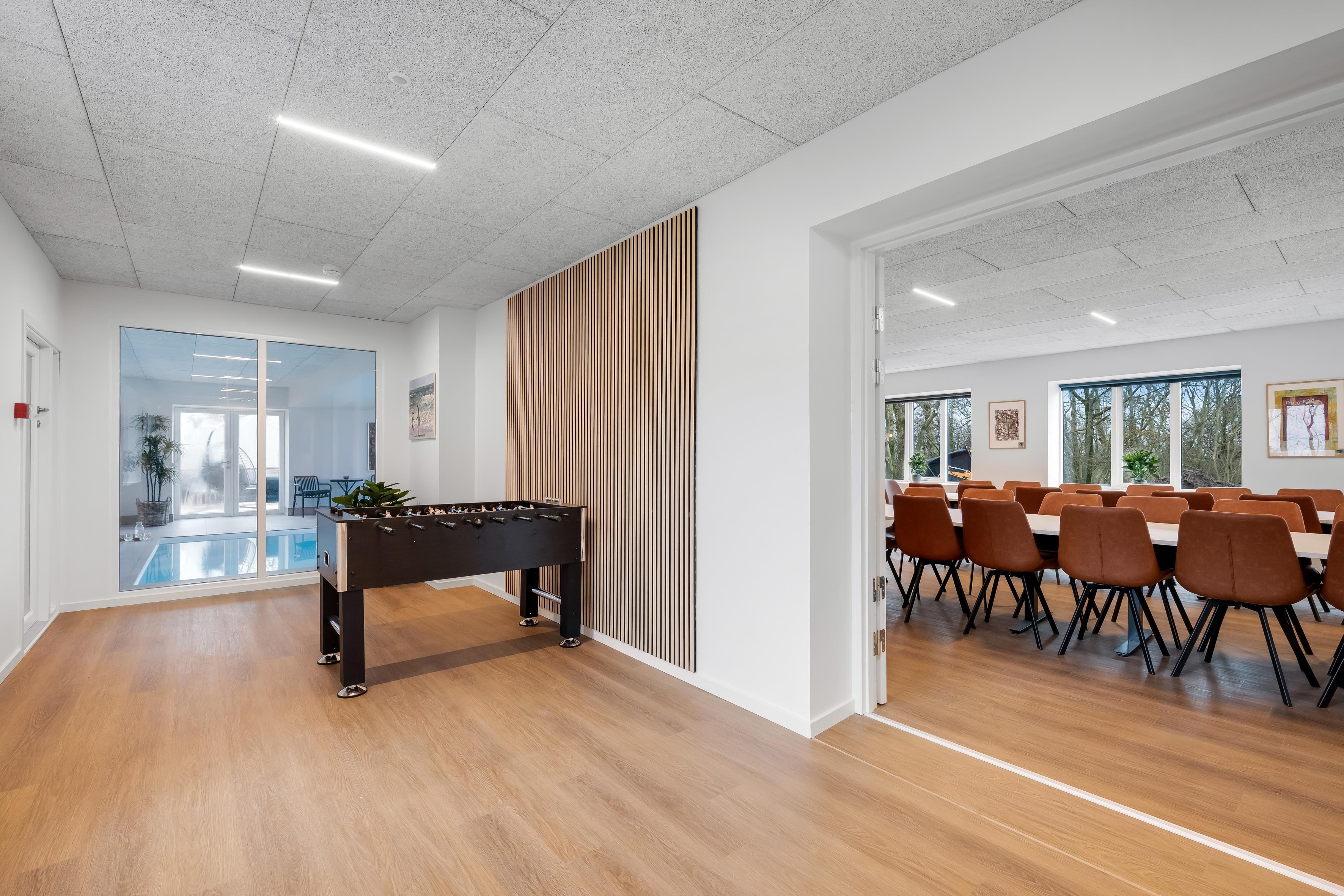 Indoors, there are 16 spacious bedrooms that can accommodate up to 50 people. Each room is equipped with comfortable beds and in most rooms there is also a bathroom, so there is room for everyone. The house has a total of 15 bathrooms, each with a toilet, sink and shower, which makes it easy for a large group to prepare for the day's adventure. In addition, there is underfloor heating throughout the house, including the bathrooms, ensuring a comfortable temperature all year round.