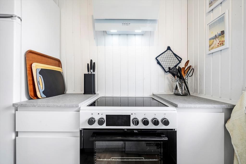 Es ist ein ganz besonderes Gefühl, die Tür zu diesem charmanten, himmelblauen Ferienhaus zu öffnen – als würde sich die Ruhe sofort einstellen. Euch erwartet echte dänische Ferienhausatmosphäre, Gemütlichkeit und ein wohnliches Ambiente, in dem ihr vom ersten Moment an abschalten könnt. Das Haus ist liebevoll eingerichtet und bietet Platz für gemeinsame Stunden ebenso wie für kleine Rückzugsorte – und natürlich ist auch euer vierbeiniger Freund herzlich willkommen. Im Wohnzimmer könnt ihr gemeinsam spielen, lesen oder einfach entspannen, während der Kamin wohlige Wärme und eine hyggelige Stimmung verbreitet. Der perfekte Ort, um nach einem Tag in der Natur zur Ruhe zu kommen – vielleicht mit einer Tasse Tee und einer Decke, während der Hund zufrieden zu euren Füßen döst. Die Küche liegt separat vom Wohnzimmer, sodass ihr ungestört kochen oder euch zurückziehen könnt. Sie ist gut ausgestattet, damit ihr alles vom Frühstück bis zum Abendessen mühelos zubereiten könnt.