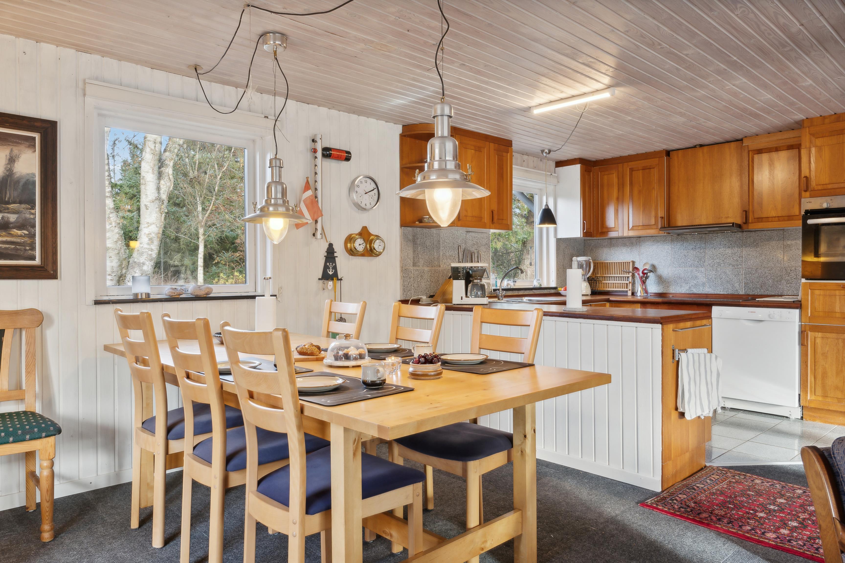 Welcome to a cosy and child-friendly holiday home at Røllikevej 196. The house is 100 m2 and has a 25 m2 covered terrace with direct access from the kitchen. The holiday home is ideally located just 100 metres from the Nissumfjord and 3 km from Sdr. Nissum with its grocery shop.