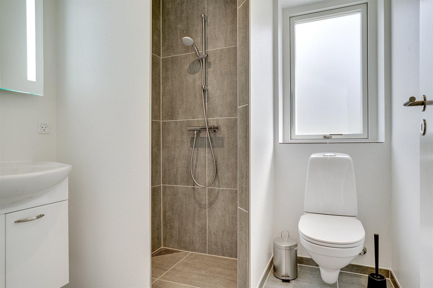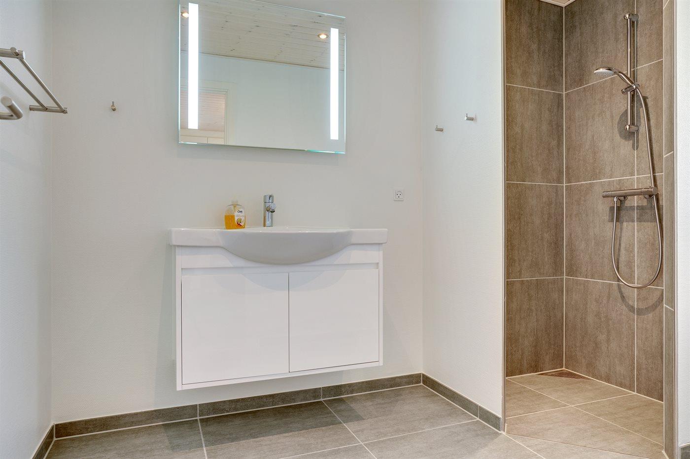 Det er 2 baderom med dusj og 2 toaletter. Det er varme i gulvet i 2 av baderom.