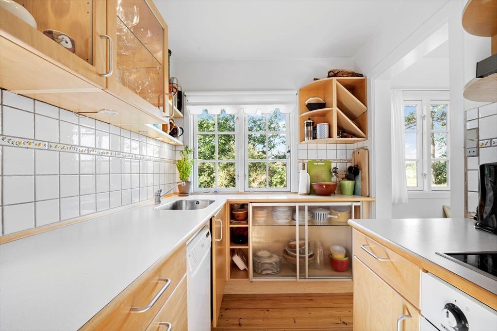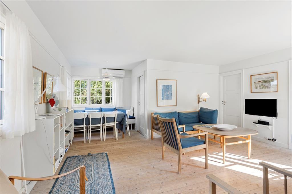 Gemütliches und gut erhaltenes Ferienhaus nur 50 Meter vom Strand entfernt gelegen und mit Panoramablick über das Wasser bei Korshavn Bugt ausgestattet. Die Umgebung lädt ein zu langen Spaziergängen oder zu einem Angelausflug. Das Ferienhaus enthält einen Flur, eine gut ausgestattete Küche, ein gemütliches Wohnzimmer mit eine energiesparende Wärmepumpe, einen Essbereich und einen Zugang zur Terrasse. Darüber hinaus gibt es vier Schlafzimmer, einen Haushaltsraum mit Waschmaschine und Wäschetrockner, eine Gästetoilette sowie ein Badezimmer mit Bodenheizung. Vom Haus und vom Garten aus haben Sie einen wunderschönen Blick über das Meer und das große Grundstück lädt ein zu Gemütlichkeit und zum Ballspielen. Außerdem gibt es für die Kinder eine Schaukel und eine Rutsche auf dem Gelände.