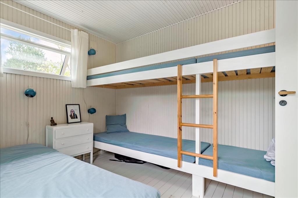Das Haus ist hell, räumlich und enthält einen Wohnraum mit großen Panoramafenstern und Ausgang zu der gemütlichen Terrasse. Es gibt 3 gute Schlafzimmer mit insgesamt 3 Doppelbetten (180x200, 140x200, 140x200) sowie auch 2 Etagenbetten. Bemerken Sie bitte, dass es keinen Schrankplatz gibt, sondern Hakens und Boxe unter den Betten.