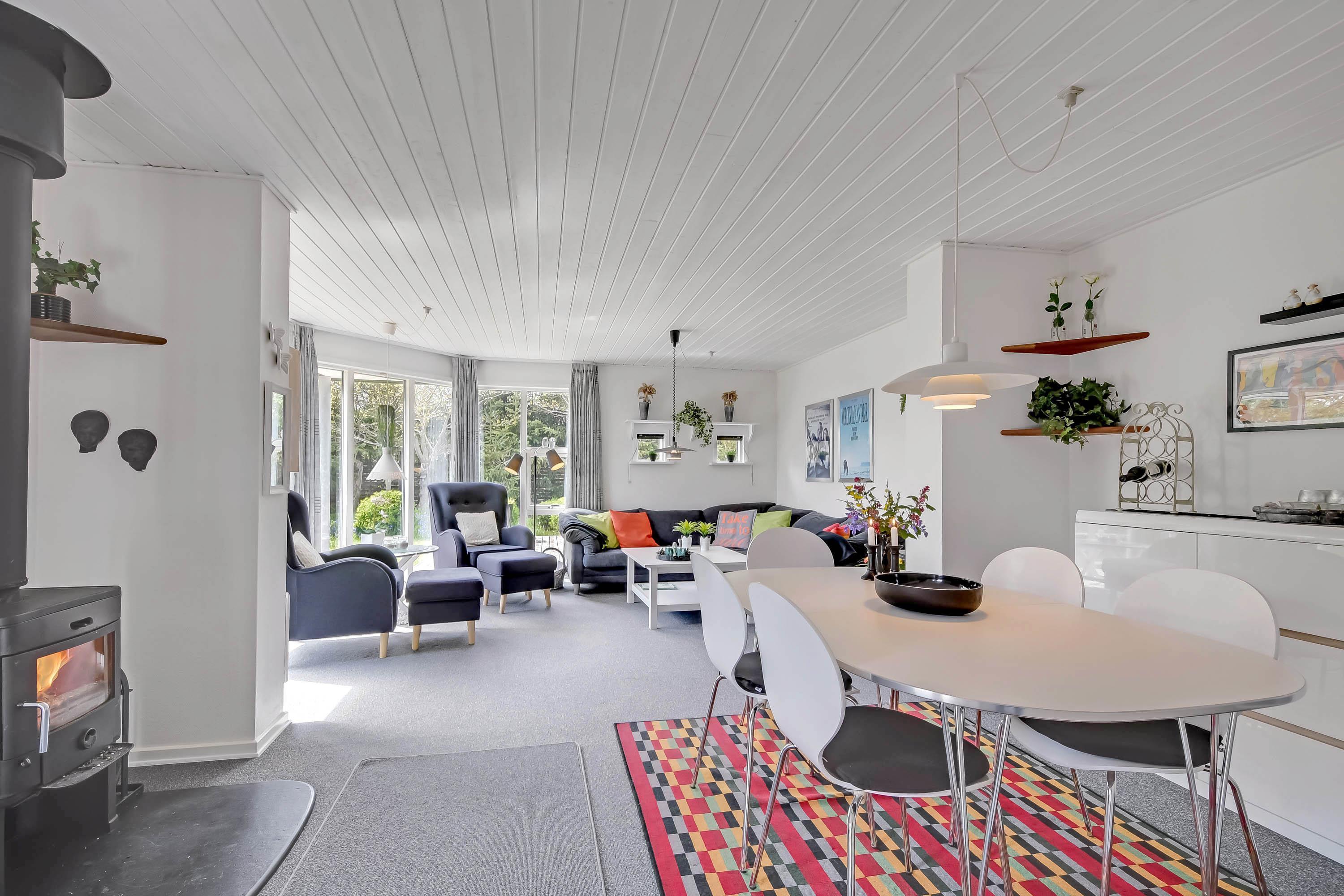 The 1,900 square metre property borders directly on the open fields. There is plenty of play equipment, a campfire site, lovely sheltered corners and even 3 terraces. The sauna and whirlpool are also very popular. And the fjord is only 500 metres away.
