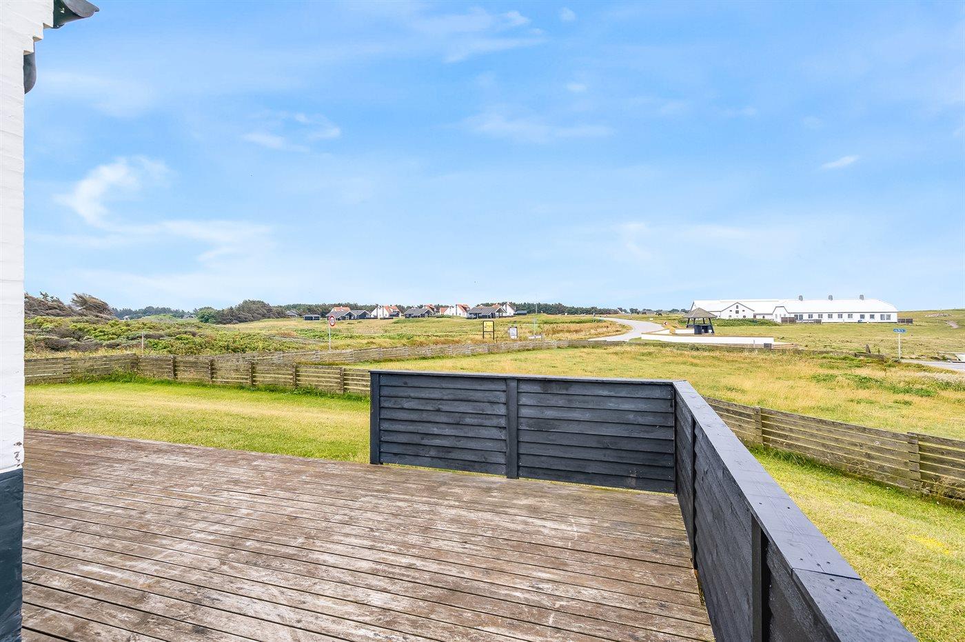Ferieboligen er beliggende på en 870 m² stor anlagt have. Avstand til hav er 60 m. Nærmeste butikk ligger i en avstand på 6000 m. Til ferieboligen hører 30 m² terrasseareal. Utgang til altan. P-plass ved huset.