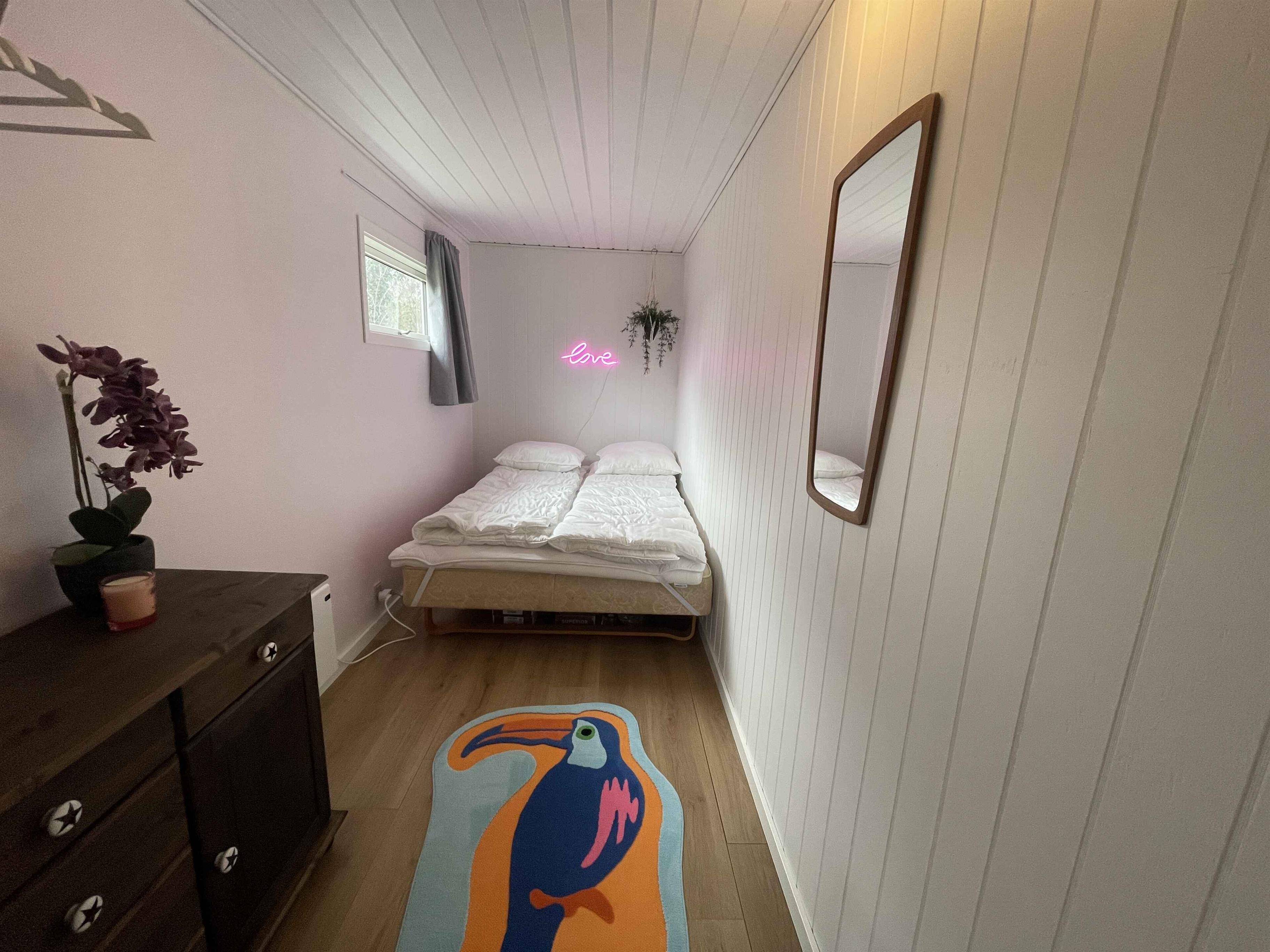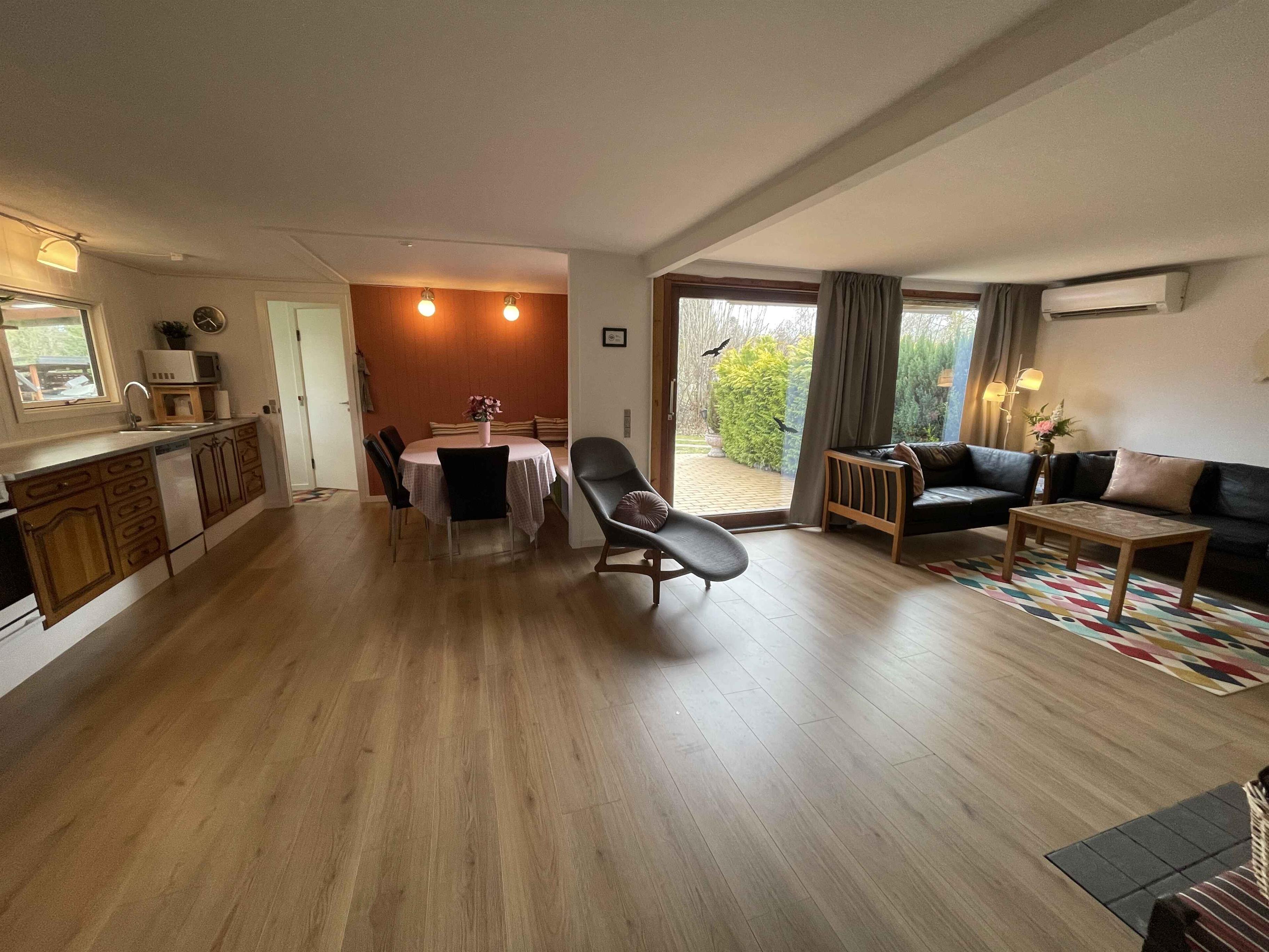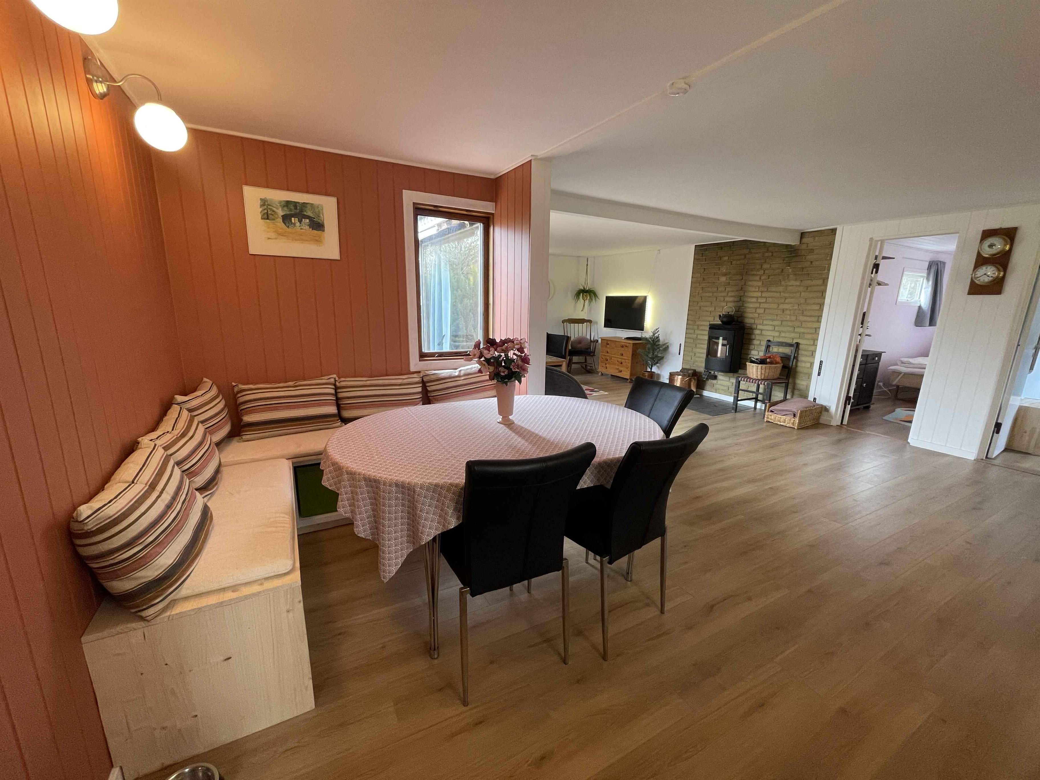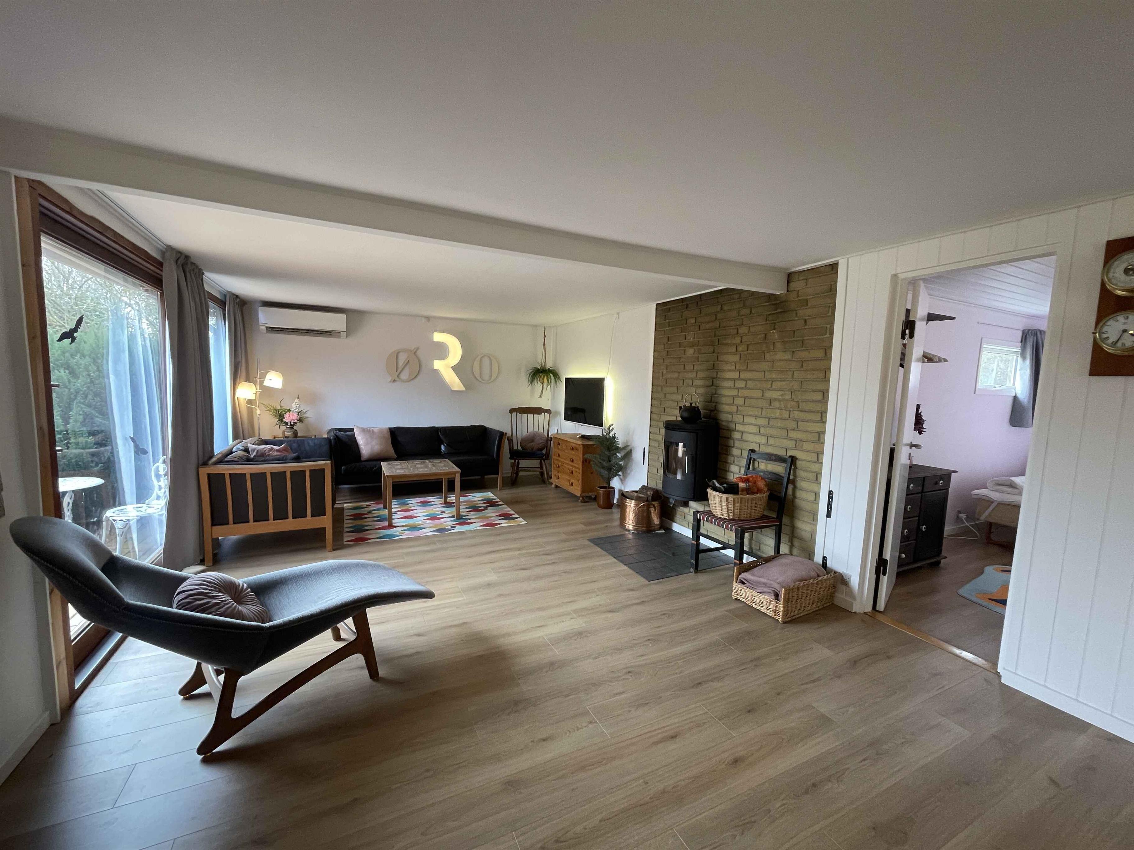 The holiday home offers 80 m² and three bedrooms with space for six guests. It provides a house with character, a peaceful atmosphere, and room for both families and two generations. The private garden invites relaxation, and the fire pit adds extra coziness to mild evenings. The terrace is partly covered, allowing outdoor dining in all kinds of weather. From the house, you can walk to a child-friendly beach and a campsite with an ice cream shop, playground, and restaurant. Orøstrand Animal Park and several local eateries are also close by, making day trips easy. The area offers a special tranquility and a charming island atmosphere that creates a warm holiday experience. In summer, the small Orø train stops at the end of the road, giving children and adults a fun way to explore the island’s sights. Orø Harbour is within walking distance, where the ferry to Holbæk departs and opens the door to more activities, dining, and pedal boat rentals. This is a perfect holiday base close to nature, water, and experiences, while still offering calm surroundings where you can relax and enjoy the days at your own pace.