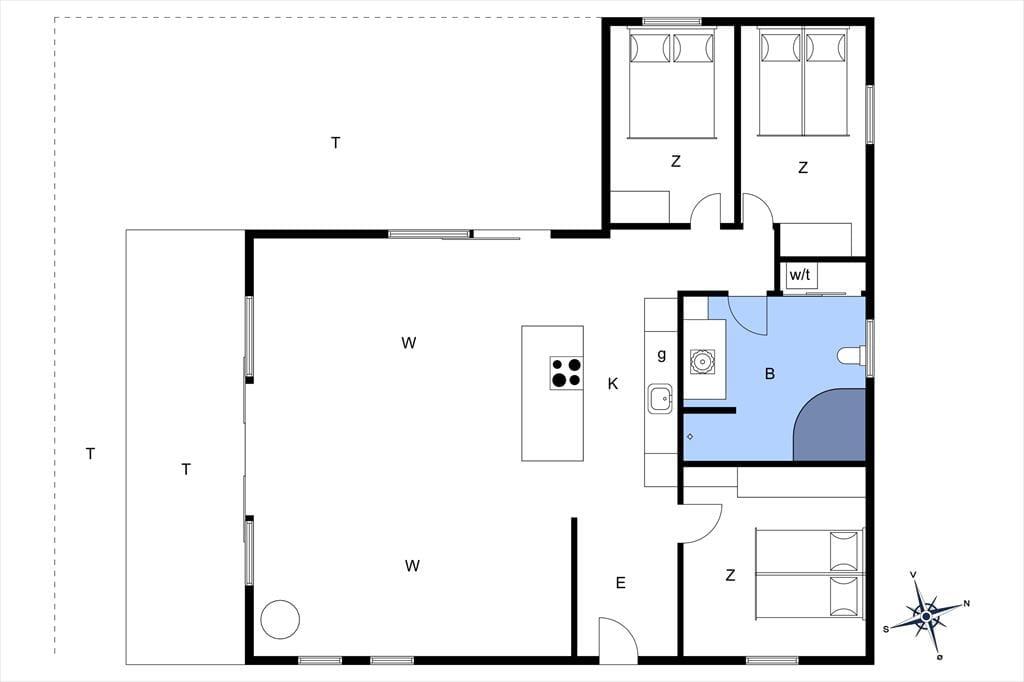 Willkommen in diesem umfassend renovierten Ferienhaus, das nur 250 Meter abseits des Strandes liegt. Das Haus präsentiert sich nahezu neuwertig und bietet mit seinen drei guten Schlafräumen Platz für 6 Personen. Alle Schlafräume verfügen über je ein Doppelbett. Einer der Räume beinhaltet einen eigenen Fernseher mit Fernsehsendern und Chromecast. Das Herzstück des Hauses bildet die ansprechende, offene Küche, die alles beinhaltet, was Sie während Ihres Urlaubs benötigen. Die Küche verfügt unter anderem über einen Geschirrspüler, eine Mikrowelle, einen Wasserkocher, eine Kaffeemaschine, ein Kochfeld, einen Backofen und einen Kühlschrank mit Gefriermöglichkeit. An die Küche grenzt der groß und, offene Wohnraum, was sehr viel Platz für das Beisammensein bietet. Für Unterhaltung sorgt der Fernseher, der dänische, deutsche, norwegische und schwedische Sender empfängt und mit Chromecast zum Streamen Ihrer abonnierten Streamingdienste ausgestattet ist.
