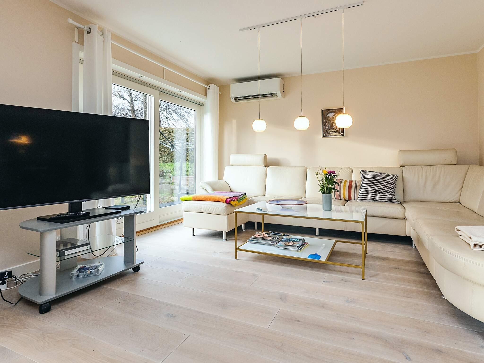 1 Oppholdsstue: Vedovn, TV, høy stol