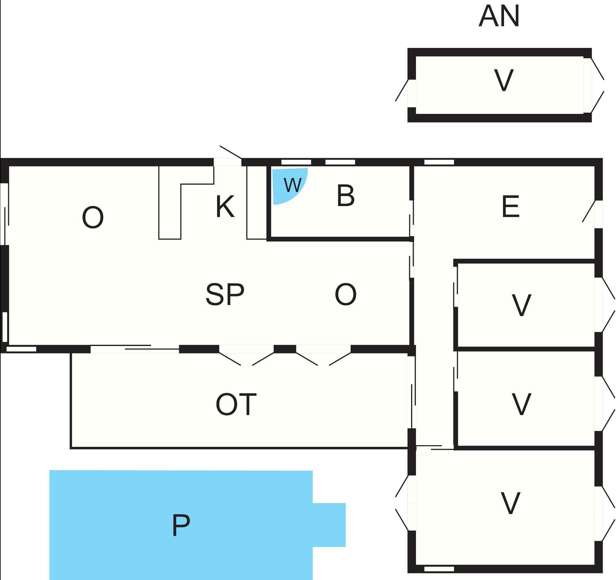Feriehus med 149 m² boligareal og 32 m² udendørs pool på den rummelige ejendom. Smukt ugeneret, i rolige og fredelige omgivelser med dejlig udsigt over de omkringliggende marker. Huset er oprindeligt opført i 1969 og er gennemgribende renoveret i 2006. Det har en rummelig entré med adgang til stort badeværelse med boblende spabad og behagelig gulvvarme. Der er tre soveværelser i huset; to af dem med hver en dobbeltseng, den tredje med en dobbeltseng og en udfoldelig dobbelt sovesofa. Derudover er der et rummeligt, separat anneks ved siden af ??på ejendommen med dobbeltseng og køle/fryseskab.