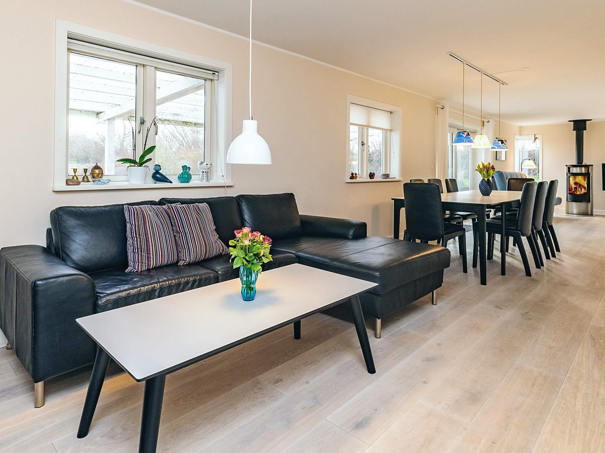 Entreen i huset giver desuden adgang til åbent køkken/alrum med spise- og opholdsområde til familielivet og en skøn udsigt til den opvarmede pool i haven. Denne kan kun benyttes fra 1. maj til 1. september. I tilknytning hertil ligger den store terrasse med siddepladser og grill. Rummelig ejendom med bålplads til bål, samt klatrestativ og legehus til børnene. Der er også en stor dobbelt carport, hvor cykler er til fri afbenyttelse (afhængigt af tilgængelighed). Køreturen til den hyggelige lystbådehavn med en række restauranter, caféer mv er i nærheden.