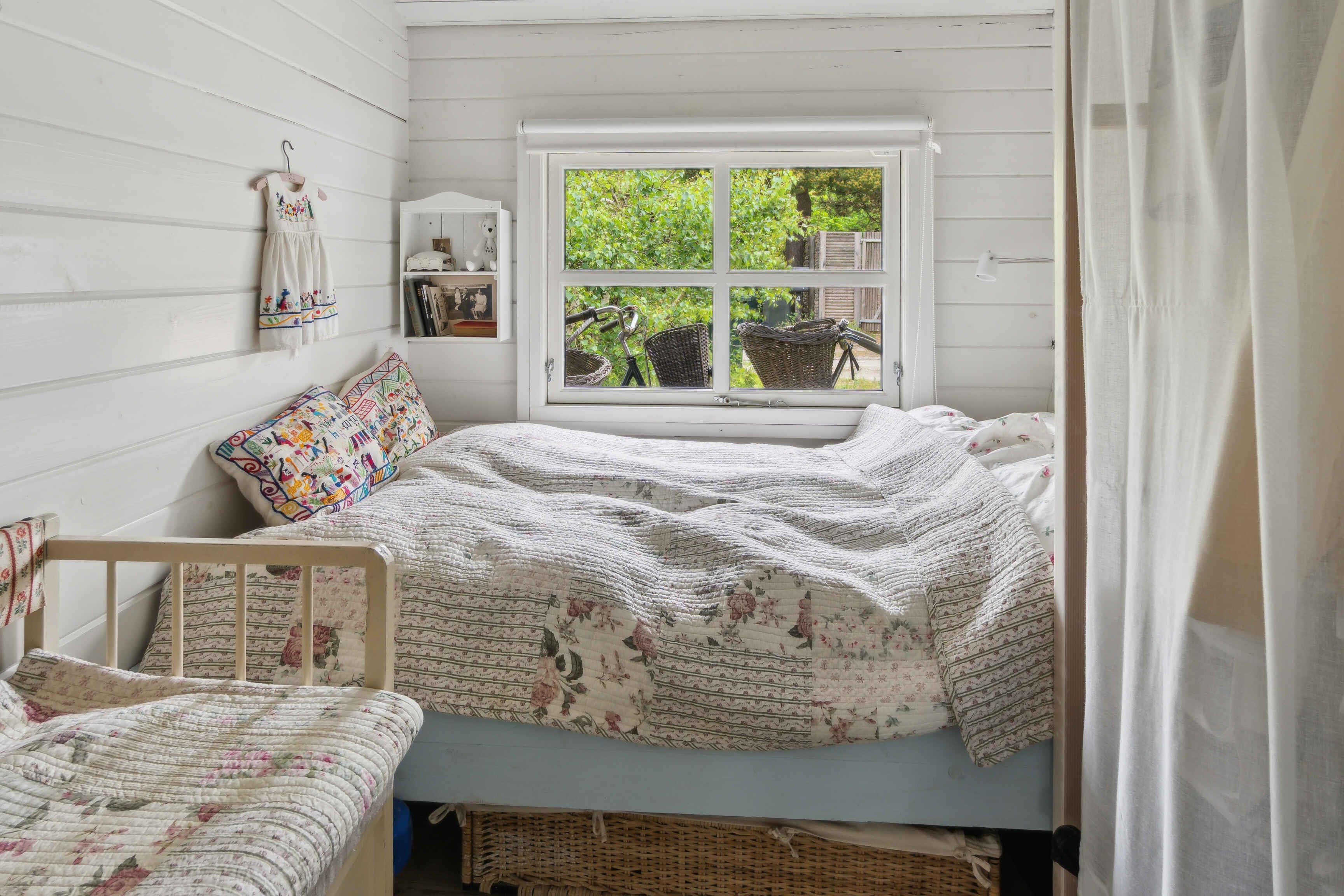 Charming well-maintained holiday home located 300 m from a private beach. The beach has garden furniture, making it feel like your own garden. There’s a jetty at the beach, great if you have children. The water is shallow and very calm, as the beach is at the beginning of Isefjorden. The holiday home, built in 2005, is decorated as a real summer house, with cozy personal items that give it a true summer house atmosphere. There’s a very large kitchen/dining area with a wood stove and all the kitchen utensils you need. From the living room, you step out to a fantastic covered terrace where you can enjoy the evening sun and the lovely nature plot with heather and pine trees. Through the kitchen door, you walk out to a fantastic outdoor kitchen with a gas stove, barbecue, and hot and cold water. This is where all the meals are made during the summer. There is a lovely master bedroom with access to a small covered morning terrace. There are also 2 smaller bedrooms, one with a double bed, the other with a single bed. There’s a large bathroom with a bathtub, and by the outdoor kitchen, there’s a lovely outdoor shower. There are children’s bikes and 3 adult bikes. Note: Not for commercial rental.