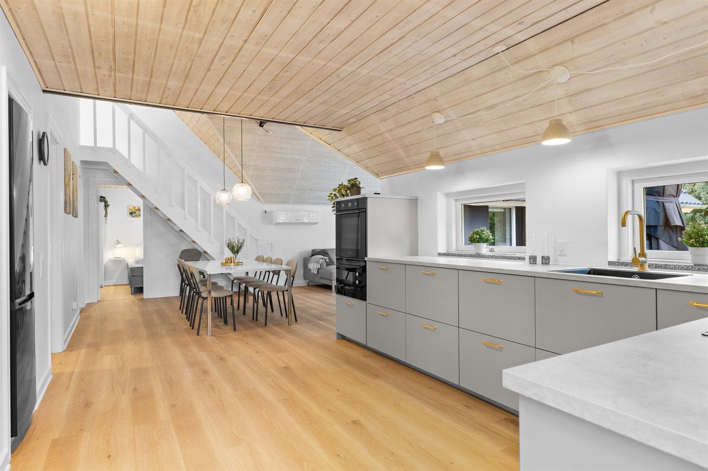 Kjøkkenet er utstyrt med 1 kjøleskap. Det er 4 induksjonskokeplater, varmluftsovn, mikrobølgeovn og oppvaskmaskin.