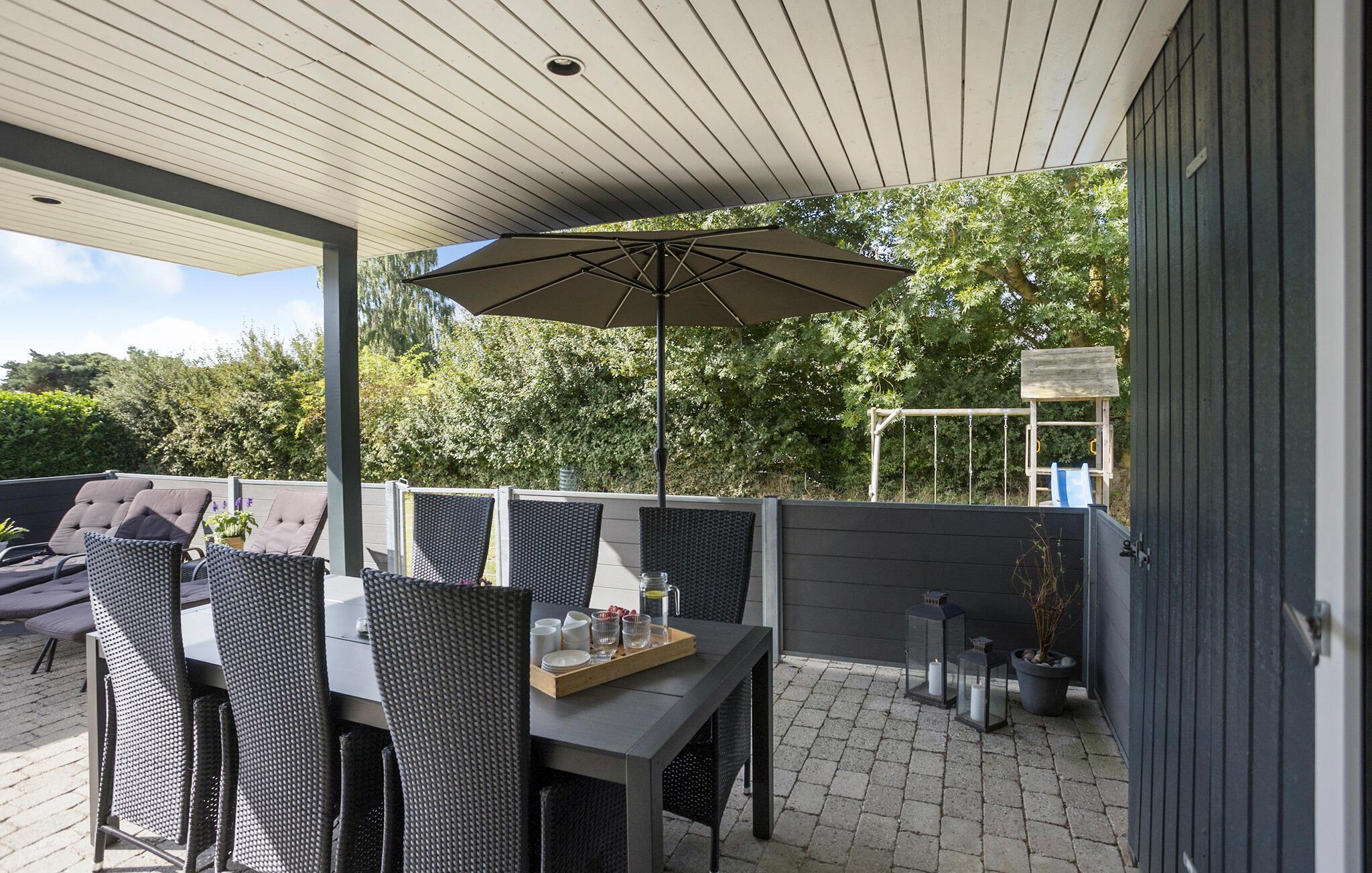 I det populære feriehusområdet nær Ristinge ligger dette vakre, koselige og romslige trehuset, som er komfortabelt og funksjonelt innredet. Det er tregulv i hele huset med unntak av baderom og basseng. Det ligger på en vindbeskyttet naturtomt, omgitt av trær. Her kombineres ro og avslapning med en aktiv familieferie. Enten naturopplevelser i omgivelsene, eller svømming i bassenget etterfulgt av et velværeprogram i boblebadet og badstuen. Fra bassengrommet med klinkergulv har du tilgang til østterrassen. Ikke langt fra huset ligger Ristinge Klitplantage med merkede turstier i det omkringliggende naturområdet. Et besøk til den spesielt barnevennlige Hesselbjerg Strand bør ikke gå glipp av. En spesiell opplevelse er å se villhestene på beitemarkene på sørspissen av Langeland. Bare 7 km fra huset ligger Langelands golfklubb og en put & take-sjø.