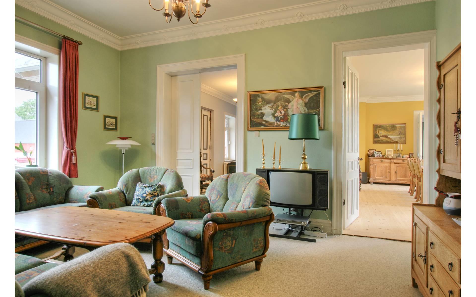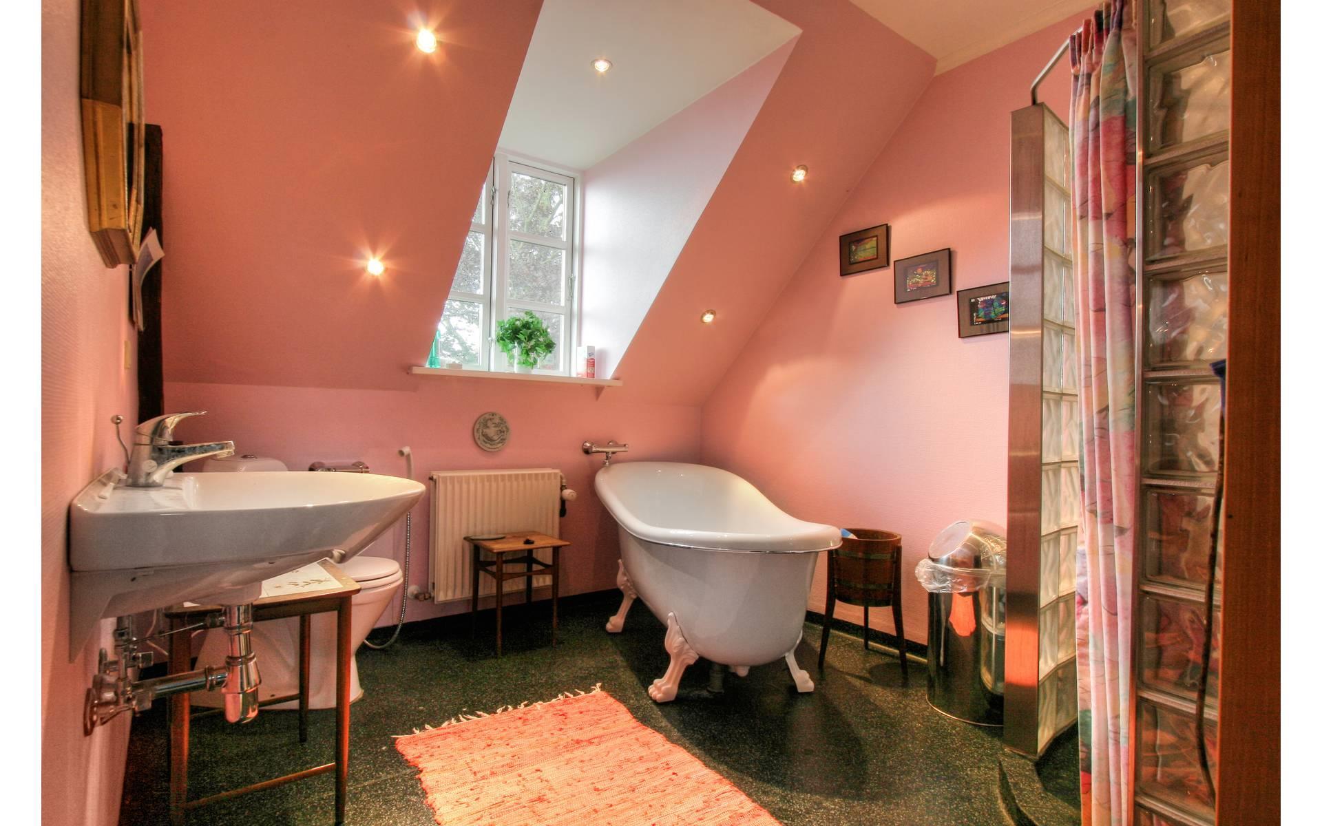 Thorum Præstegård has room for 30 people. The holiday home is situated in a beautiful nature with many activities opportunities on the 45000m2 large nature plot. There is a beach volleyball court, soccer goal, and a cable car 40 meters long. In the rectory there is a living room and two dining rooms. Furthermore, there are 10 rooms where 2 of thems are walk-throught room, 1 bathroom and two guest toilets. In the functional kitchen there is a dishwasher, microwave, fridge and stove. There is also a Finnish BBQ hut with seating for 30 people. The outdoor hot tub is heated by a wood stove - there is also an unheated hottub. The rectory itself is 460m2 including a large activity room. There is also a double bed. A holiday home with many activities for the large family or group who wants to be in the middle of beautiful nature.