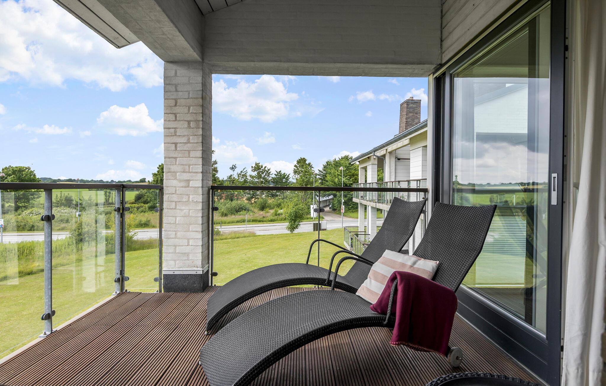Til golfspillere. Tilbring en avslappende ferie nær den tysk-danske grensen i denne moderne og velutstyrte ferieleiligheten, som har en fantastisk utsikt over golfbanen og Østersjøen. Dette er det ideelle tilfluktsstedet for golfelskere som ønsker både avslapning og sportslige utfordringer. Ferieleiligheten i første etasje er stilfullt innredet og har alt du trenger for et komfortabelt opphold. Den lyse stuen, som leder direkte ut til en romslig balkong, innbyr til avslappende stunder. Nyt den fantastiske utsikten over golfbanen og havet mens du runder av dagen med et glass vin.