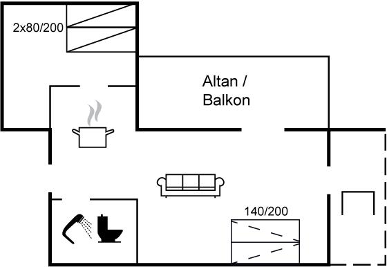 Ferieleiligheten er egnet for 4 personer. Ferieboligen har et bebodd areal på 46 m² og er bygget i 1976. I 2020 gjennomgikk ferieboligen en delvis renovering. Ingen husdyr tillatt. Ferieboligen er utstyrt med 1 energivennlig luft-til-vann varmepumpe. Frysekapasitet på 30 liter.