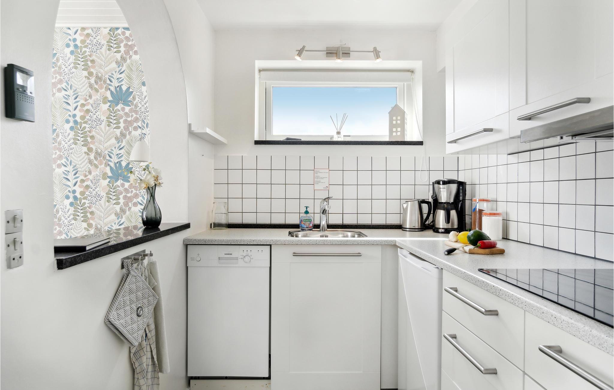 Leiligheten ligger i Sandkås ved siden av det populære Hotel Friheden og kun 75 m fra sandstranden og klippene. Her får du et velutstyrt, smakfullt interiør som gir et vennlig inntrykk, og som er den ideelle rammen for en avslappende ferie. Slapp av i den koselige stuen etter utflukter og aktiviteter, og nyt et morsomt brettspill om kvelden. Er det fint vær, kan du nyte frokosten på terrassen mens du blir inspirert til aktivitetene som venter, og senere kan du oppleve fortryllende solnedganger.
