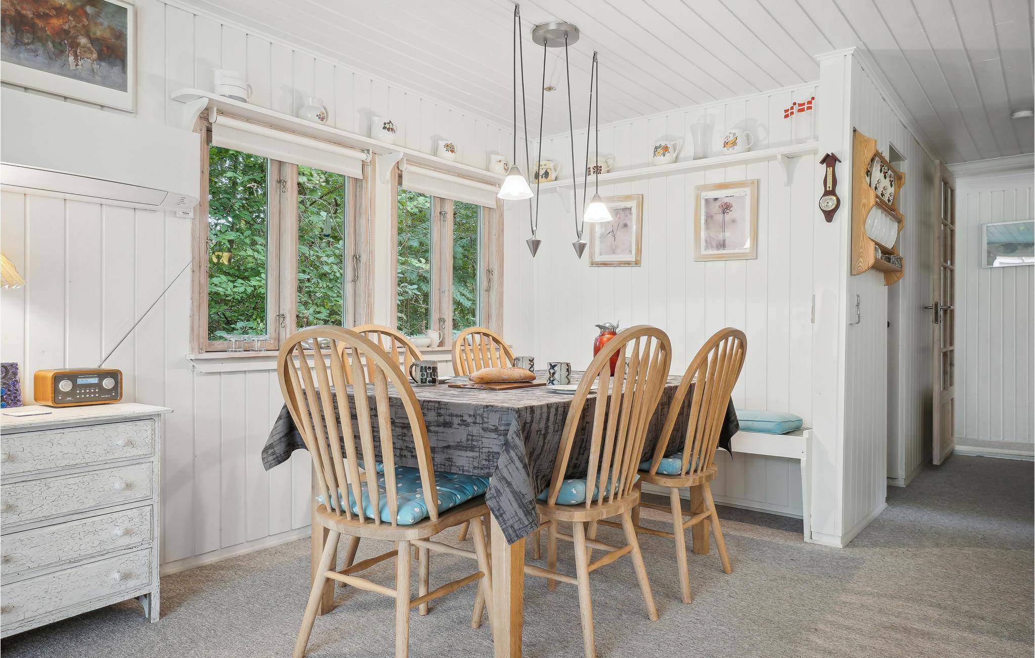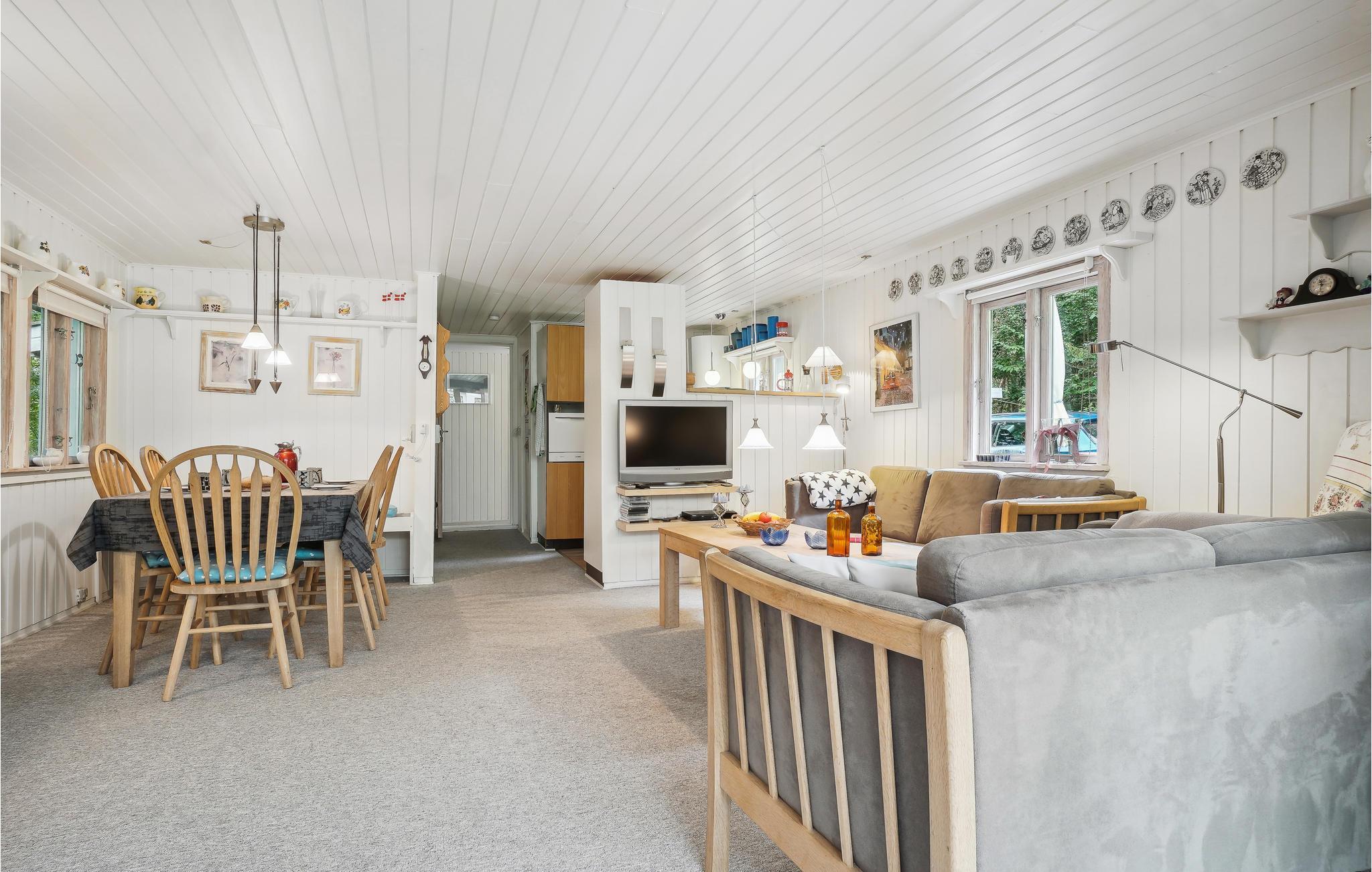 Det innbydende og romslige huset ligger idyllisk til og byr på perfekte forutsetninger for en ferie med fantastiske naturopplevelser, herlige timer utendørs og koselige stunder i huset. Spis i hyggelig lag ved spisebordet med vakker utsikt over naturen, og gled deg til koselige kvelder ved den knitrende peisen.
