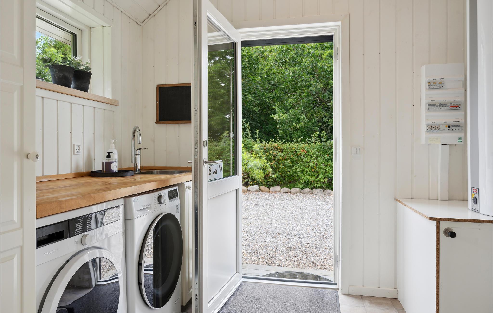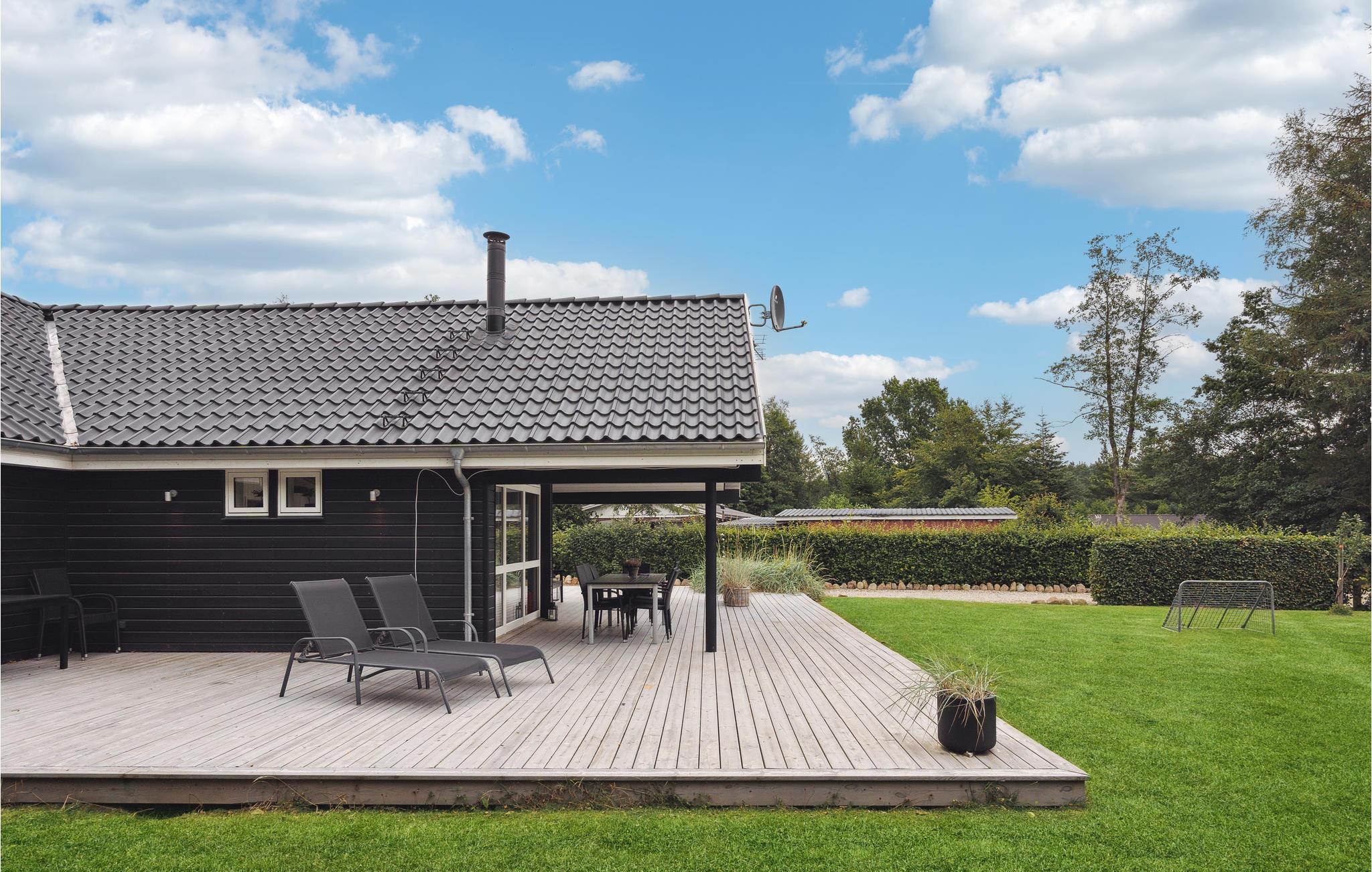 Tilbring en herlig ferie i dette tiltalende og lyse feriehuset med innbydende møbler og lys innredning. Se frem til avslappende ferier og bruk den store og høye stuen, som også forbinder spisestuen og kjøkkenet, som et sentralt møtepunkt for familien. Her kan dere samles uansett vær og vind for å spille spill, se på film eller lage deilig mat. På kveldene kan du nyte peisens knitring mens du ser en underholdende film, og du kan også se ut i hagen. På badet kan du nyte velværeprogrammet ditt i boblebadet, men du kan også fortsette med et solbad på terrassen. La sjelen dingle mens barna inntar hagen som lekeområde og fyller den med latter. Kveldene kan avsluttes med grillmat og sosialt samvær.