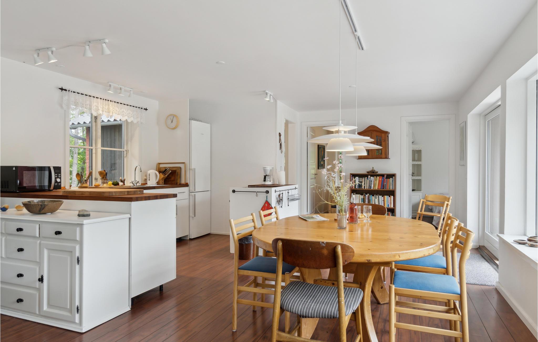 Tilbring en fredelig og avslappende ferie i dette vakre og lyse feriehuset. Her kan du føle deg hjemme og nyte atmosfæren med peis og koselig stemning i stuen og lage deilig mat på det åpne kjøkkenet. Det vakre huset er velutstyrt, så her kommer du ikke til å savne noe. Om morgenen kan du gå ut på den vakre treterrassen med en dampende kopp kaffe og se på barna som løper rundt på plenen.