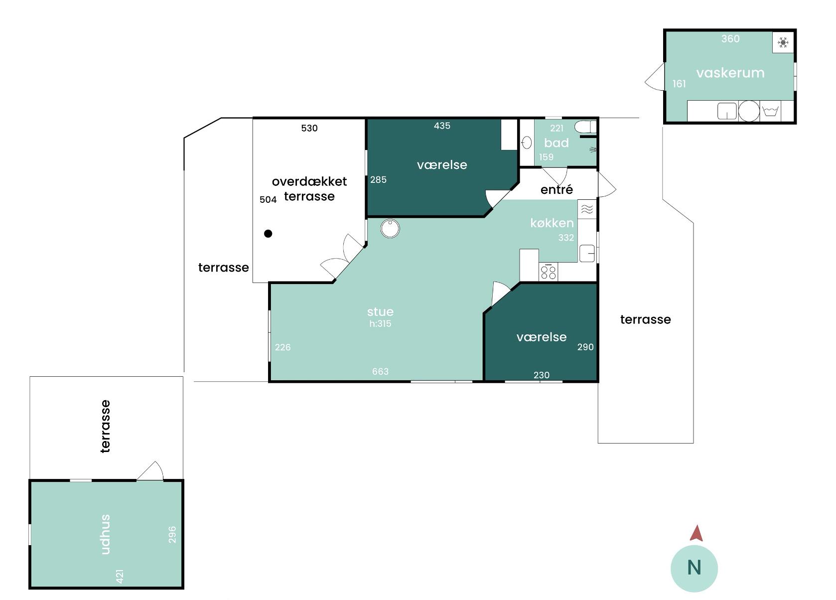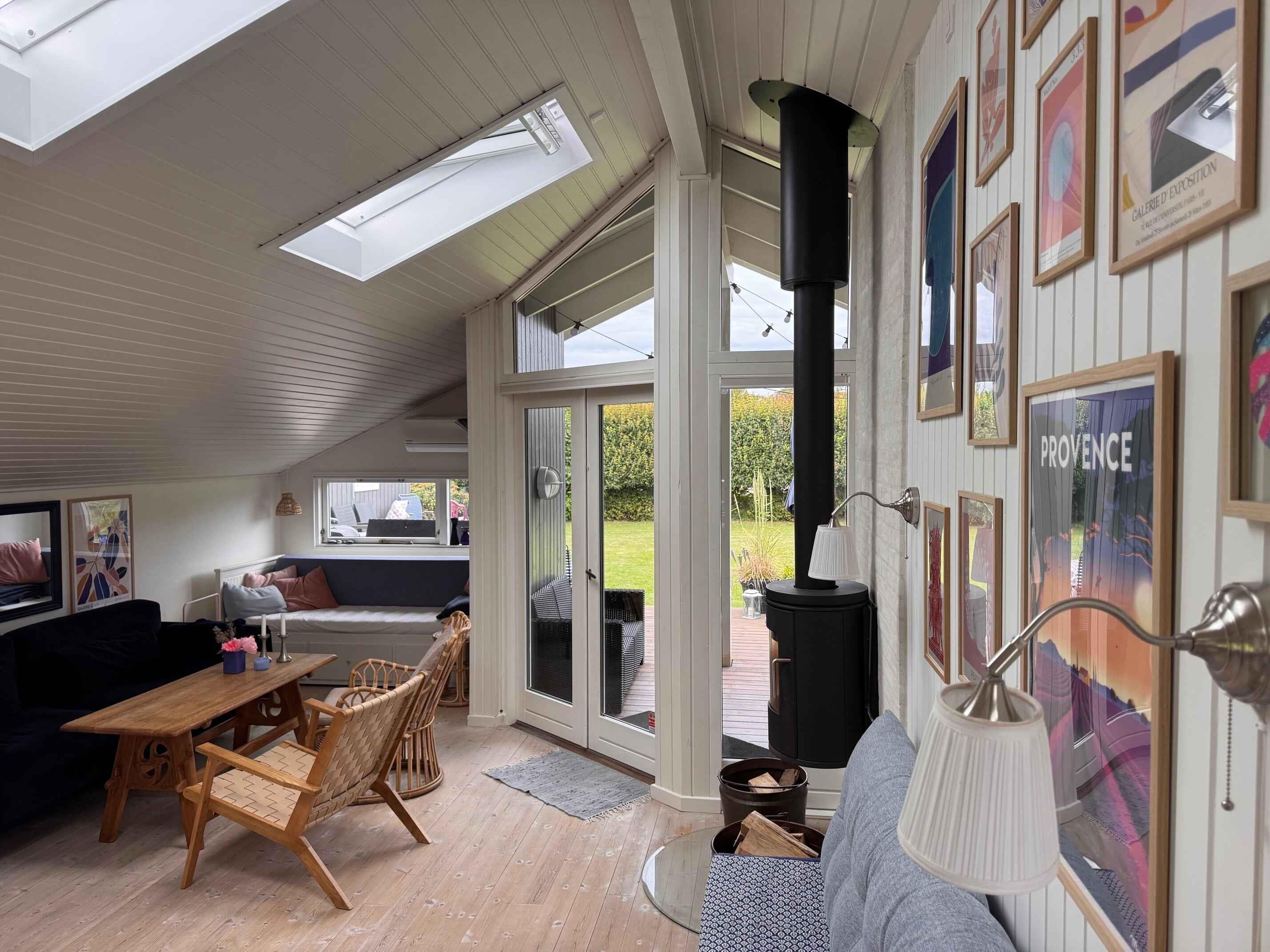 This little gem of a holiday home is decorated in a warm and personal style that invites you to relax, enjoy and spend quality time. Here you can plan a week full of relaxation, board games, swimming from the nearby bathing bridge and beautiful walks in the scenic area. In the centre of the house is a bright and inviting living room, which is integrated with the smaller but functional kitchen. Here there is space for cooking, playing games at the dining table and relaxing on the sofa. Large skylight windows let the daylight in and give the room an open and bright atmosphere – regardless of the weather outside. There are two bedrooms – one large and one smaller – both with double beds. In the living room there is a sofa bed with space for two more people. The house also includes a cosy annex, furnished as a TV room, where you can stream your favourite TV content from your mobile phone – or take an undisturbed nap in peace and quiet on one of the two beds that is used as a couch. Outdoors you will find two lovely terraces: a morning terrace for the first cup of coffee of the day while the sun rises in the east, and an evening terrace to the west with a barbecue and good furniture, perfect for afternoon drinks and cozy dinners in the long summer evenings, either under the open sky or under the covered terrace. And for the youngest in the family (or childlike souls), the garden offers an underground trampoline - perfect for playing and exercising outdoors. In addition, the large grass areas invite you to play ball games and Viking games. Note: Not for commercial rental.