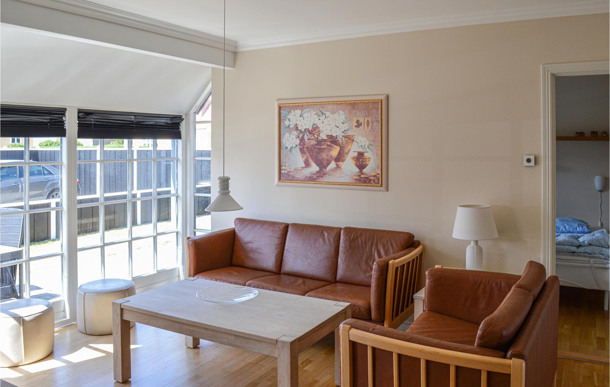 I gangavstand fra sentrum i Skagen ligger denne oasen av attraktive tomannsboliger. Dette feriehuset i to etasjer har et praktisk kjøkken i åpen forbindelse med den flotte stuen med utgang til den solrike terrassen. De store vestvendte vinduene i stuen gir et fint og mykt lys. Gode, store soverom. Du har direkte tilgang til soveloftet, som er som et ekte rom. Fin solrik terrasse med hagemøbler og grill for koselige sommerkvelder. Det er absolutt verdt å utforske Skagens mange museer, restauranter og gågater med mange butikker. Det anbefales også en spasertur langs havnen hvor du kan kjøpe fersk fisk.