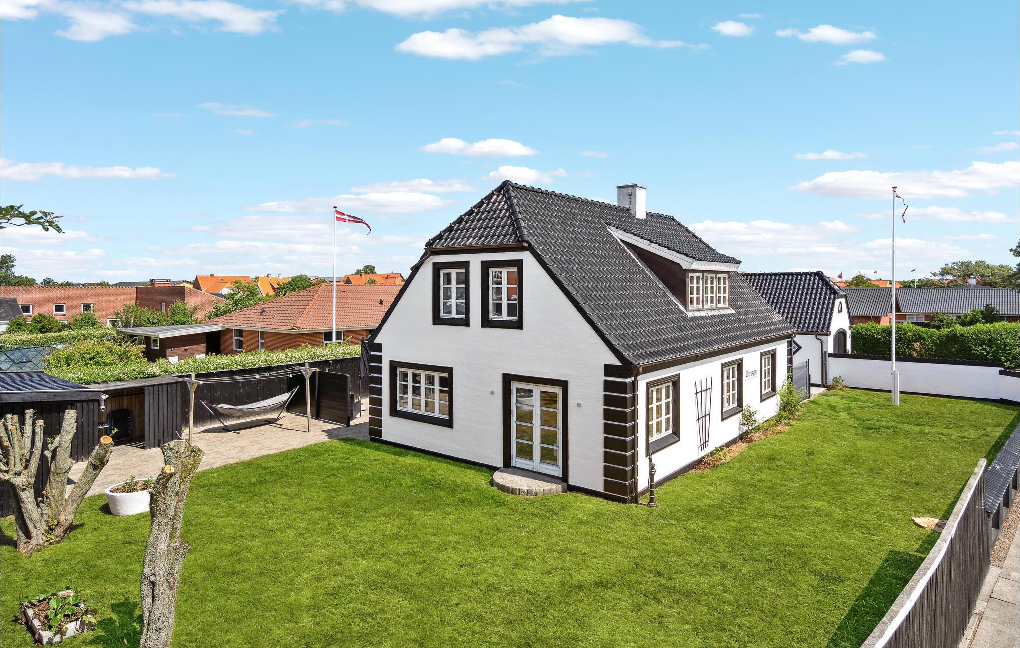 Denne romslige villaen ligger i sentrum av Skagen. Interiøret er innredet i et innbydende design. En høy standard og den interessante arkitekturen skaper en spesiell atmosfære både inne og ute. Tre store soverom, to bad, to stuer og en landing gir god plass. Terrassen er godt egnet for opphold fra morgen til kveld. Sentrum av Skagen er innen gangavstand, det samme er alle attraksjonene i byen.