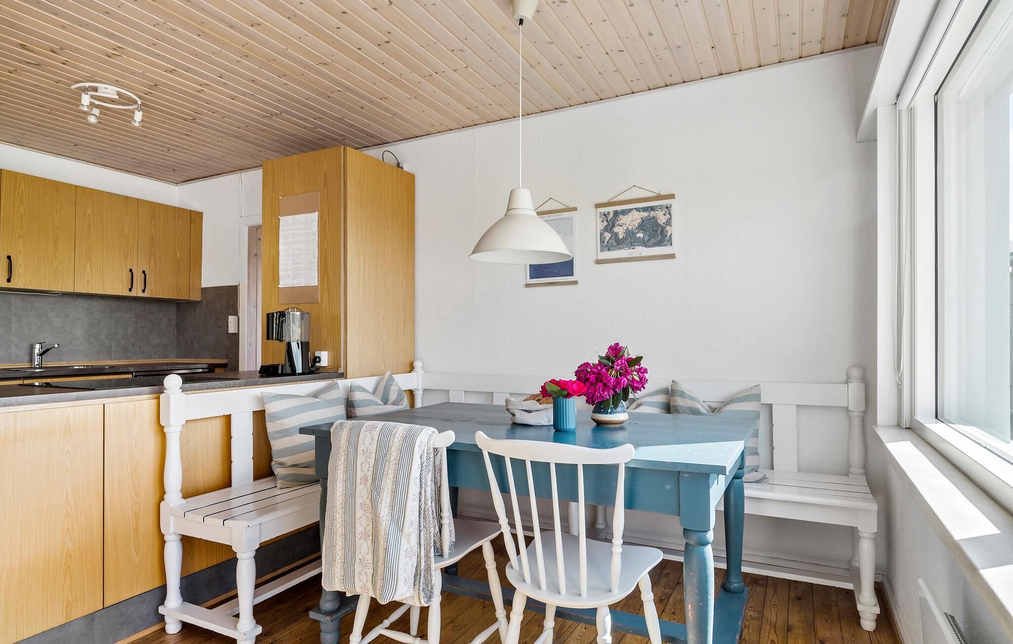 Bare noen få meter fra en familievennlig sandstrand ved den pittoreske Apenradfjorden ligger feriehuset ditt og ønsker deg velkommen til en herlig ferie i Sør-Danmark. Fra huset og terrassen har du en fantastisk utsikt over havet. Området er også et populært og godt fiskeområde. Nyt freden og roen og de vakre omgivelsene i fulle drag. Start dagen med en avslappende frokost på terrassen under parasollen og la blikket vandre over det glitrende vannet. Bruk det praktiske kjøkkenet til å tilberede deilige måltider sammen med familien. Den åpne spisestuen og den lyse stuen med den store vindusfronten skaper en innbydende atmosfære for sosialt samvær. Sett deg godt til rette i sofaen og nyt den koselige atmosfæren, som forsterkes ytterligere av vedovnen.