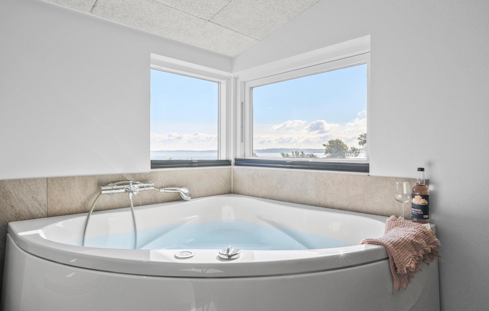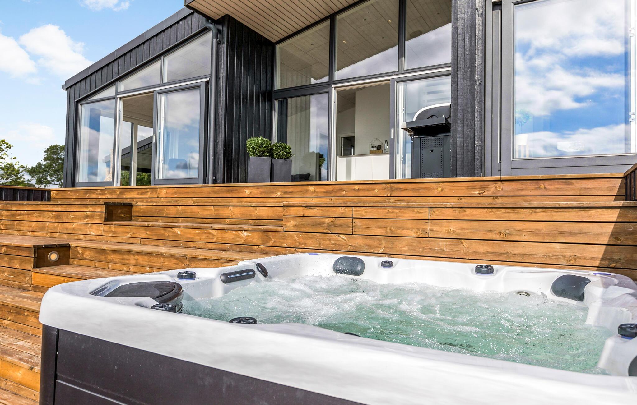 Terrassen er delt inn i flere nivåer, slik at du kan sitte helt skjermet og nyte deilige retter fra grillen. Når du kommer hjem fra dagens utflukter, kan du unne deg en dukkert i boblebadet innendørs eller utendørs under åpen himmel.