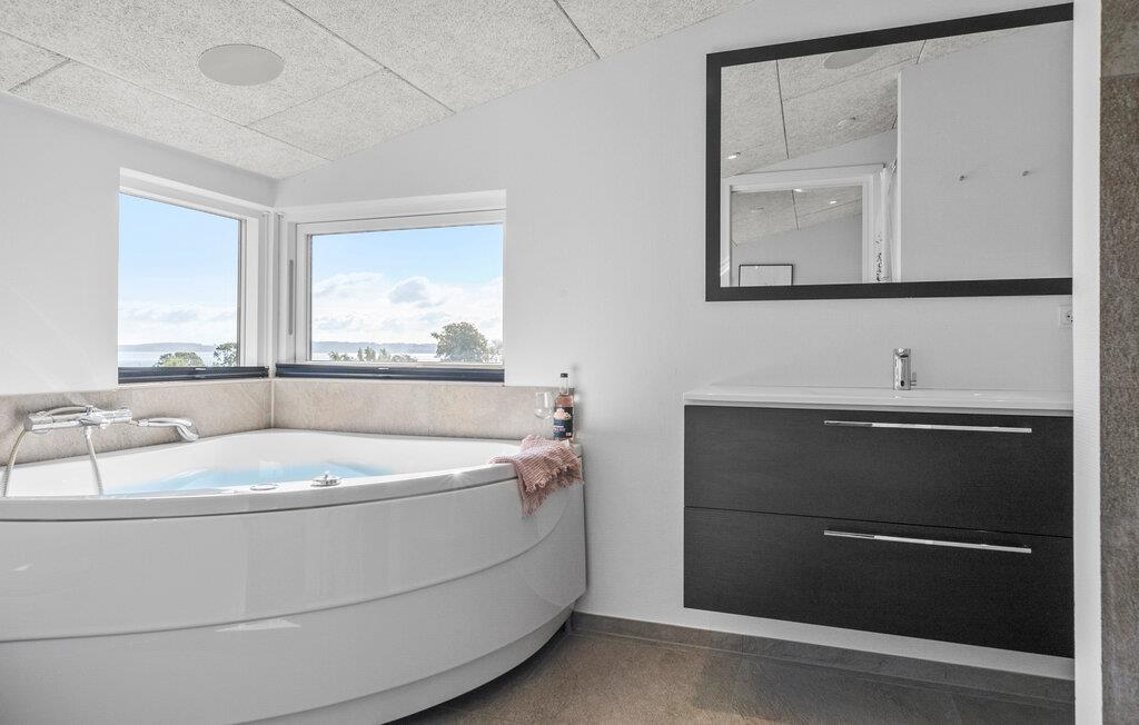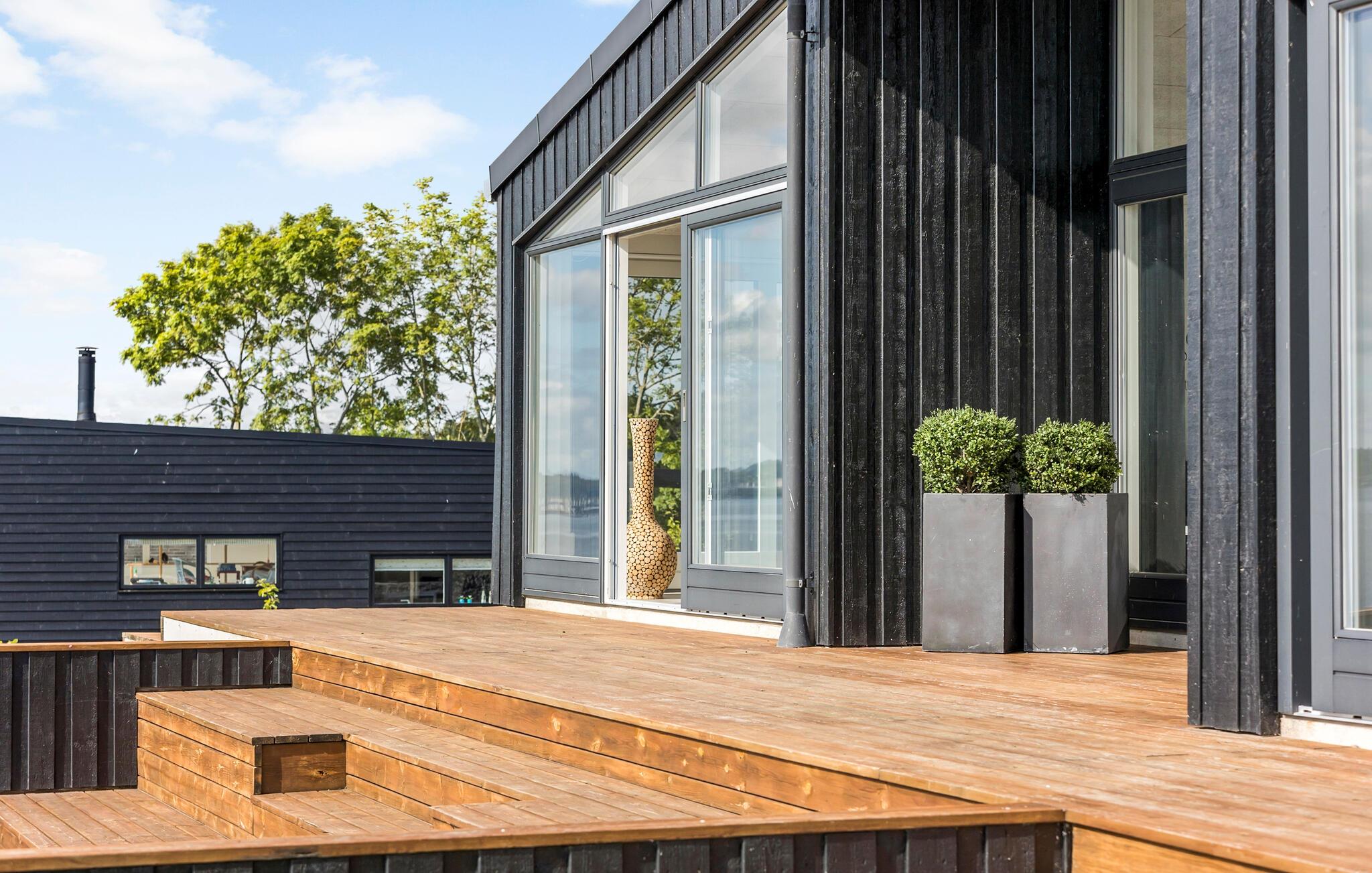 Omgivelsene er helt spesielle i dette innbydende huset: Her har du fjordens blå vann som et vakkert bakteppe for alle dagens fornøyelige aktiviteter. Du kan spise frokost ute og nyte den fantastiske utsikten over hagen og vannet like bortenfor. Den store stuen med åpen planløsning er en hyggelig møteplass når dere kommer hjem fra dagens utflukter. Når middagen er fortært, kan dere gjøre dere klare for brettspill ved spisebordet.