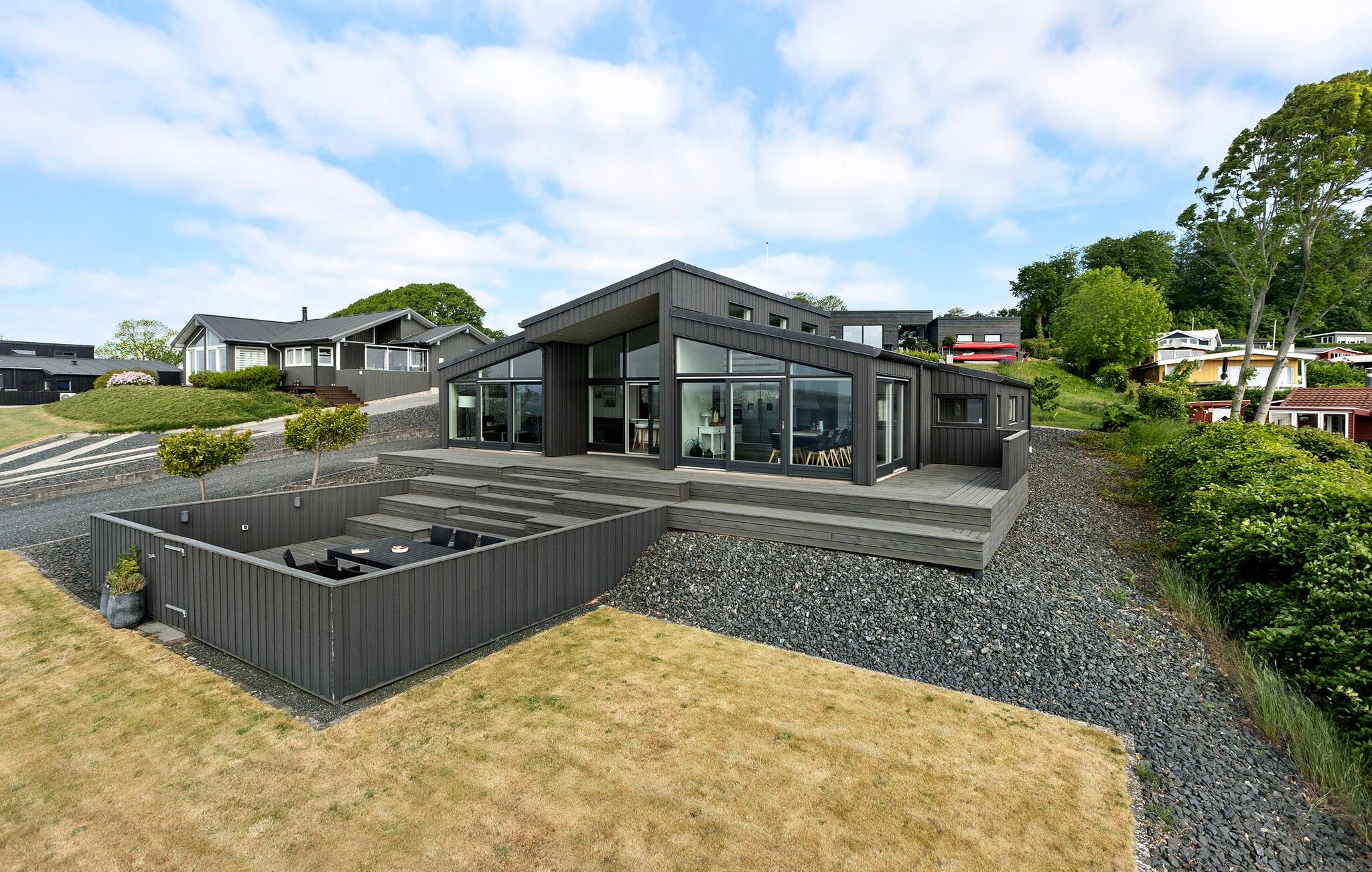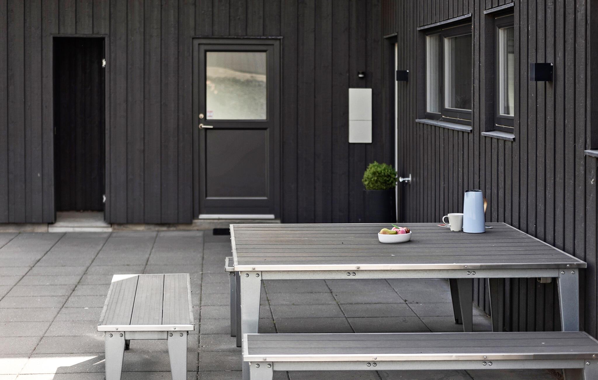 Slå deg ned på den overbygde terrassen og la blikket vandre over vannet ved Skarrevstranden. Nyt den friske luften og tilbring hyggelige timer ute med grillmat eller et glass vin. Det store uteområdet innbyr også til lek og opphold.
