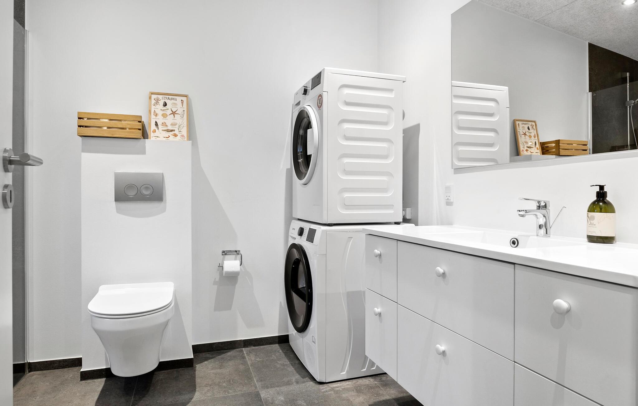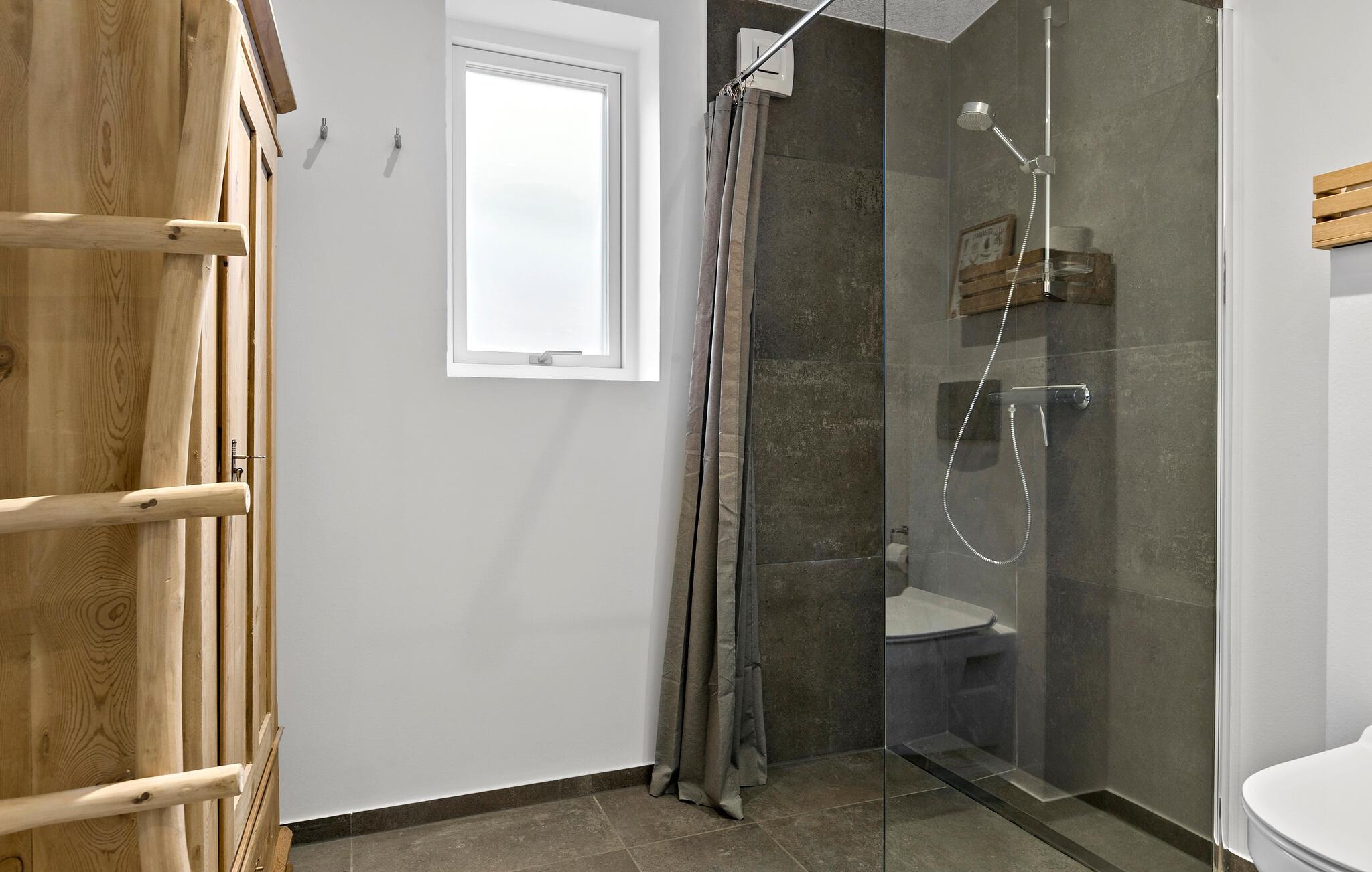 La blikket vandre over det glitrende vannet og nyt roen i dette stilfulle feriehuset på Skarrev. Den lyse stuen med stor takhøyde kombinerer stue, spisestue og matlaging i en harmonisk atmosfære. Moderne møbler og store vindusflater skaper en åpen og innbydende atmosfære der du bare kan slappe av og nyte feriehverdagen. Du kan nyte en avslappet frokost på treterrassen eller avslutte dagen med et glass vin mens barna leker i hagen.