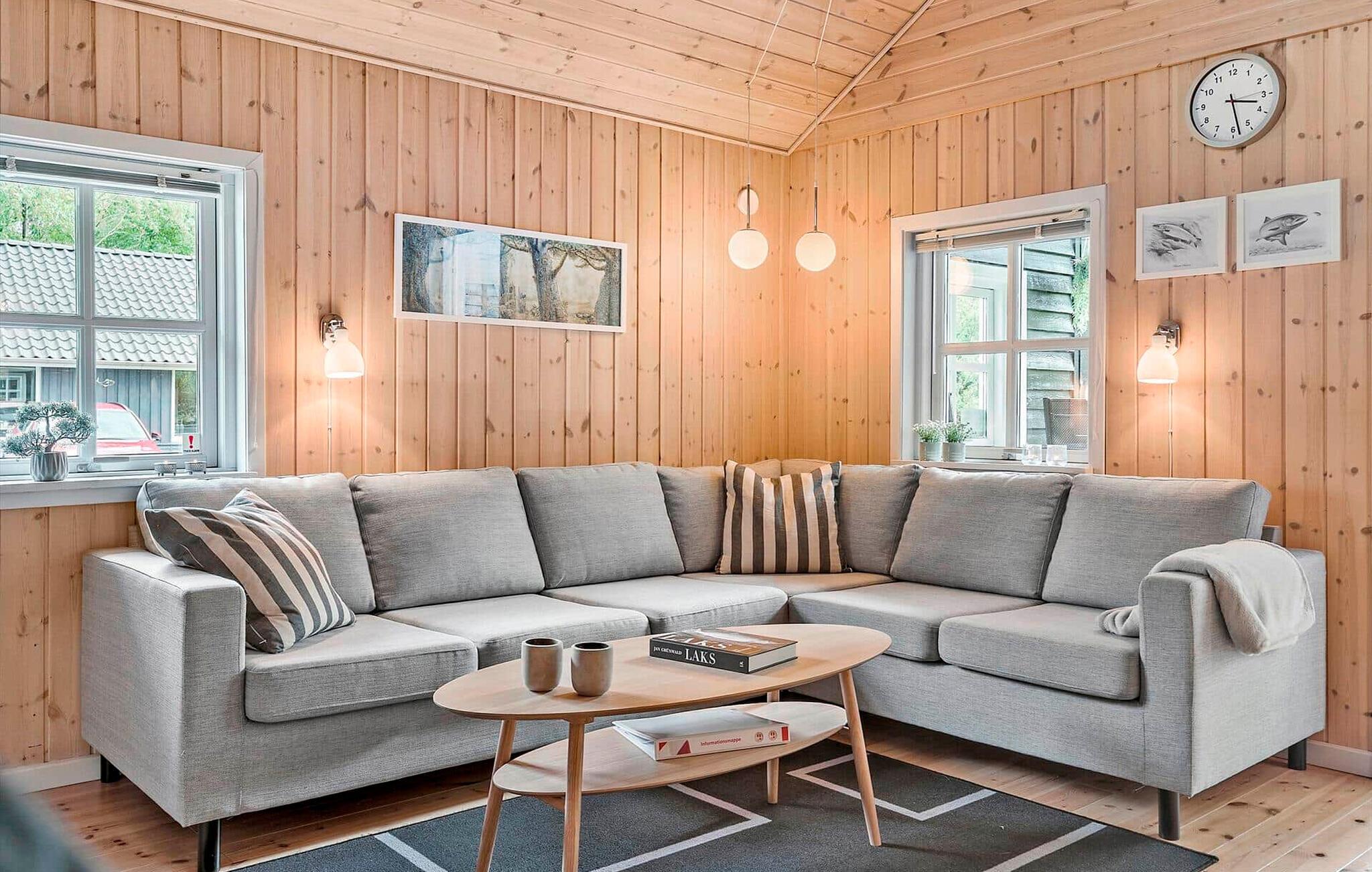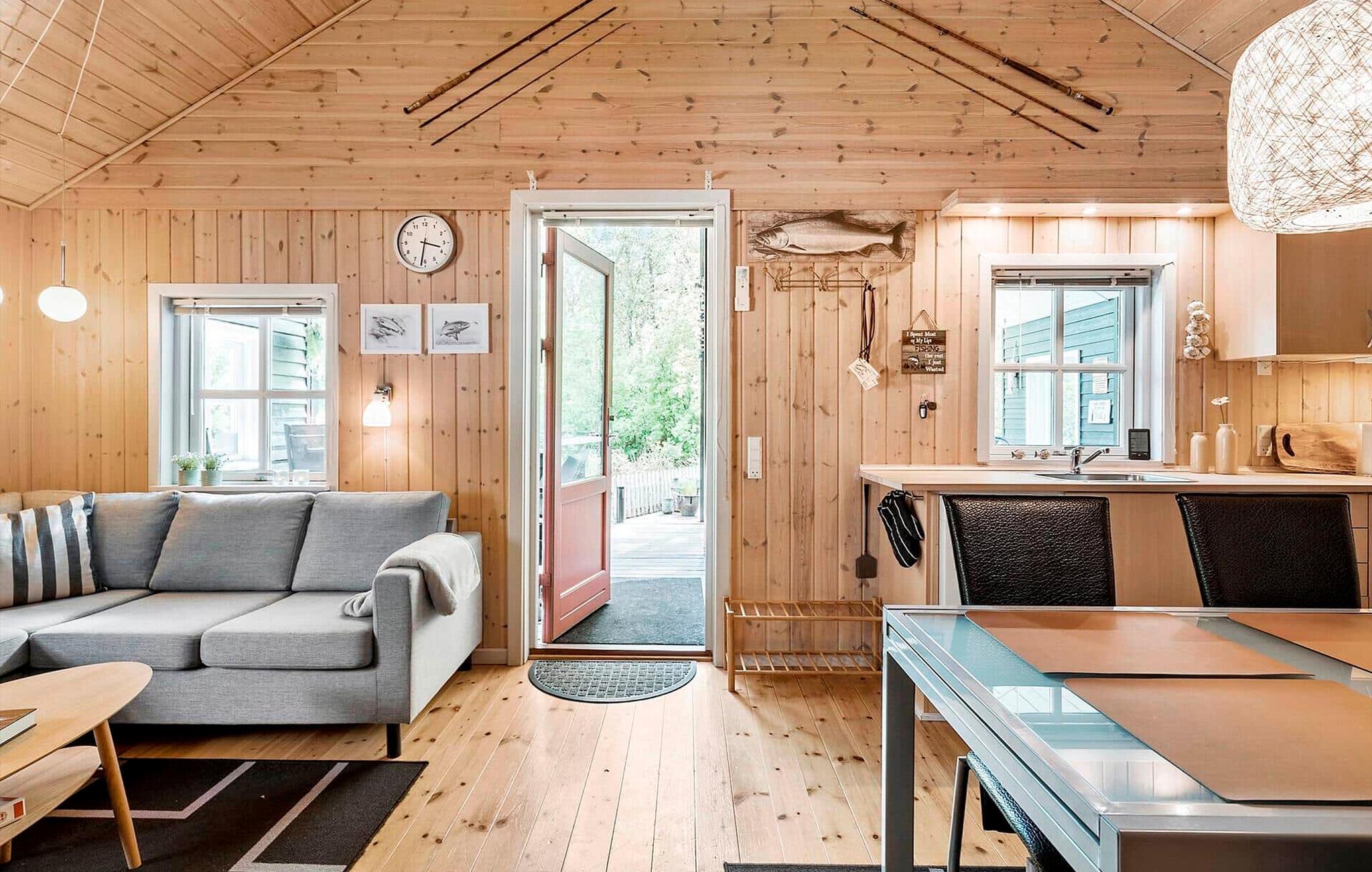 Dette sjarmerende feriehuset ønsker deg velkommen med et varmt treinteriør og en koselig atmosfære. Tilbring avslappende timer foran den knitrende peisen, eller nyt koselige kvelder i den romslige sofaen med en spennende bok eller et brettspill. Dere kan lage mat sammen på det velutstyrte kjøkkenet og feire måltidene i den innbydende spisestuen.