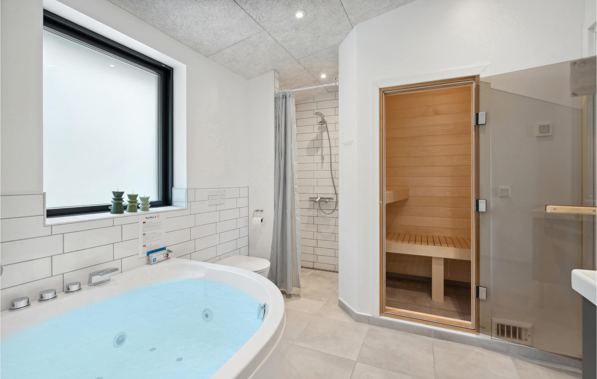 Se frem til en herlig og aktiv ferie i dette romslige feriehuset. Her er det god plass til deg og dine nærmeste, og i kjøligere temperaturer kan dere kose dere foran peisen, lage en deilig suppe på kjøkkenet eller slappe av og se en film i sofaen. Det er også et aktivitetsrom der du kan spille biljard eller vise frem dine keyboardferdigheter. Etterpå kan du slappe av i badekaret med boblebadfunksjon eller i badstuen.
