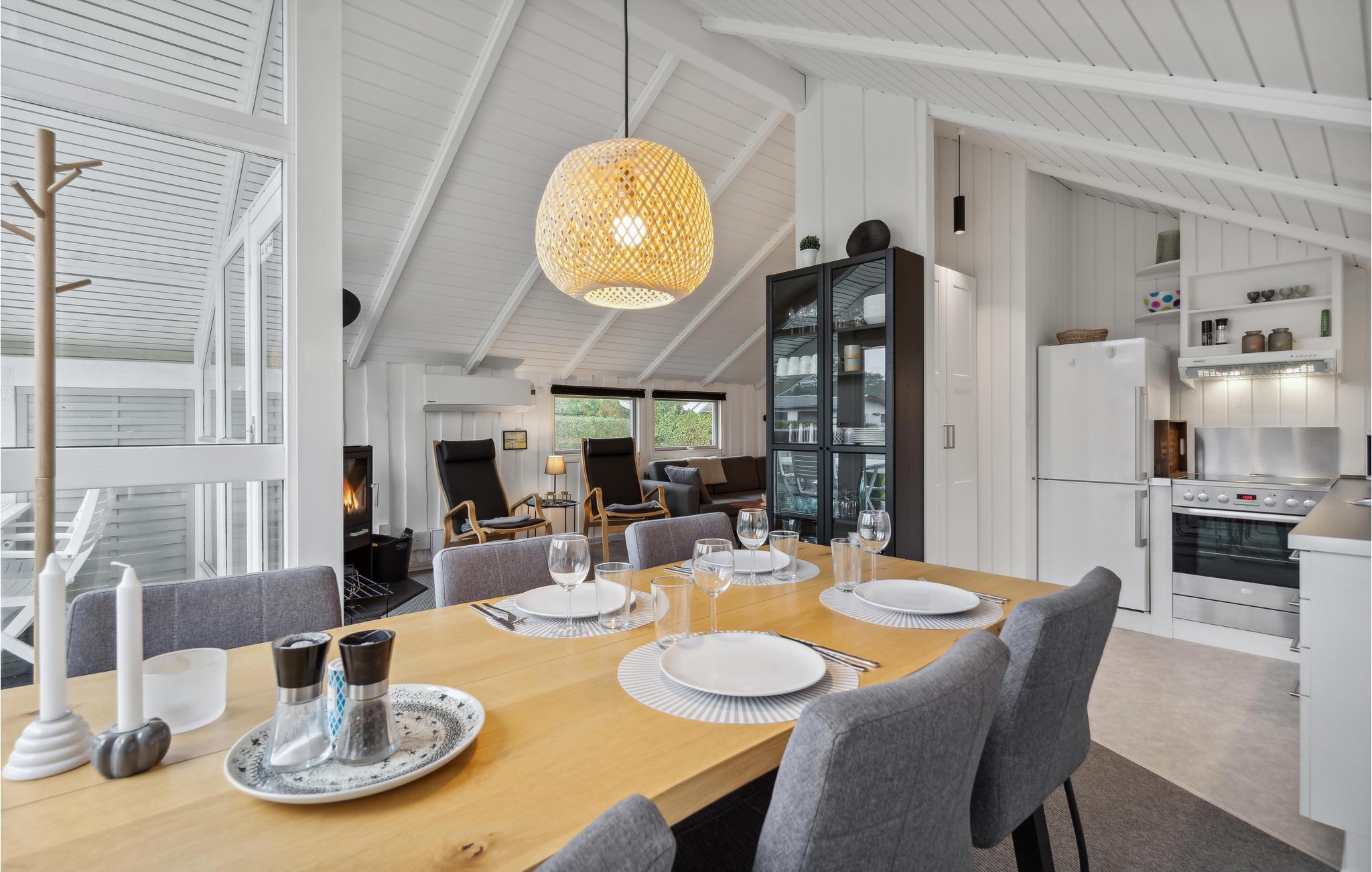 Opplev en avslappende ferie i det innbydende huset, som ønsker sine gjester velkommen bare noen få skritt fra fjorden på en velholdt tomt. Våkn opp til en vakker utsikt over naturen og slapp av i den hyggelige stuen etter en tur på stranden, hvor du også kan la blikket vandre over hagen takket være de store vinduene. Tenn opp i vedovnen om kvelden og slå av en lang prat i den koselige sofaen.