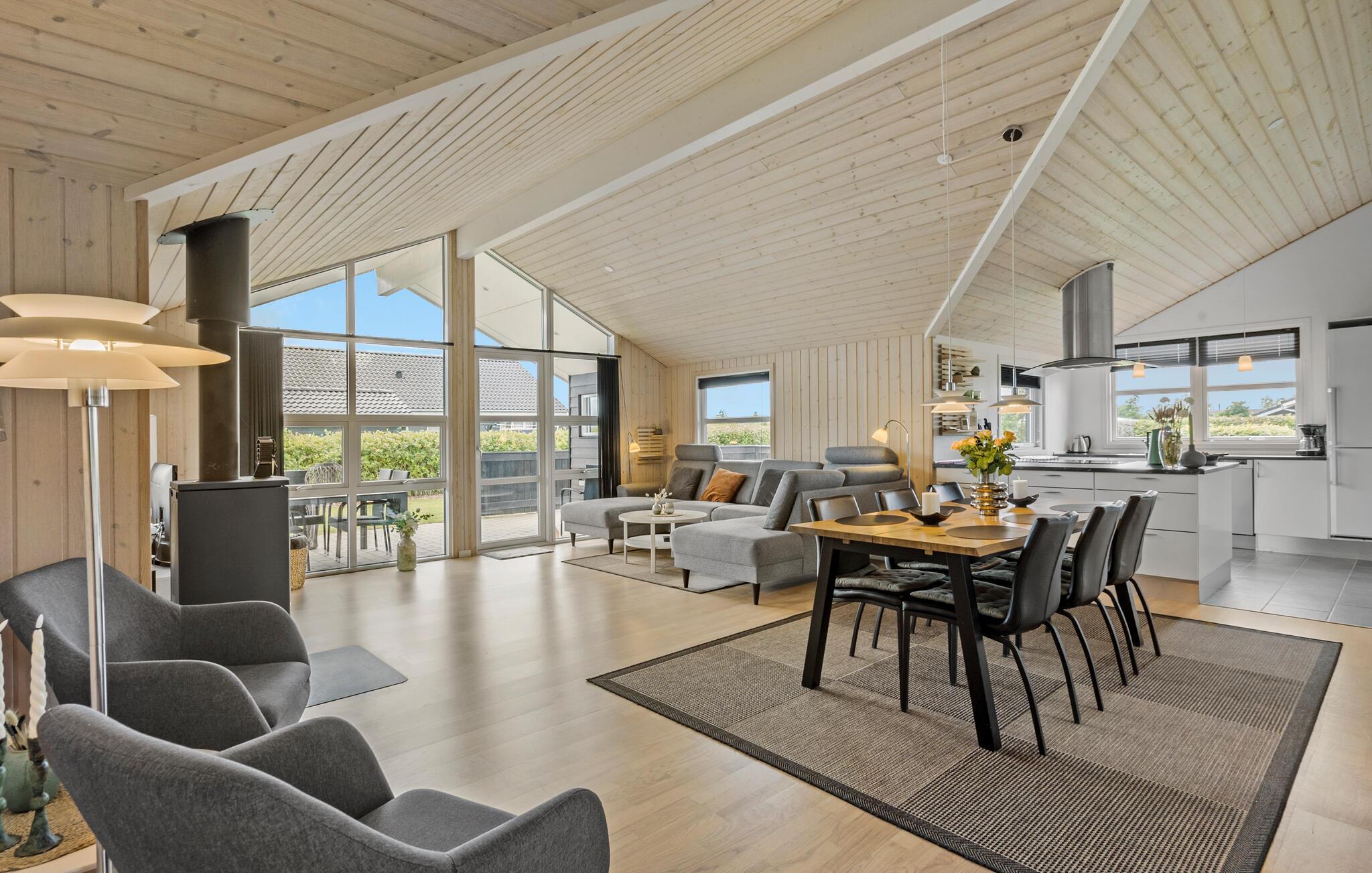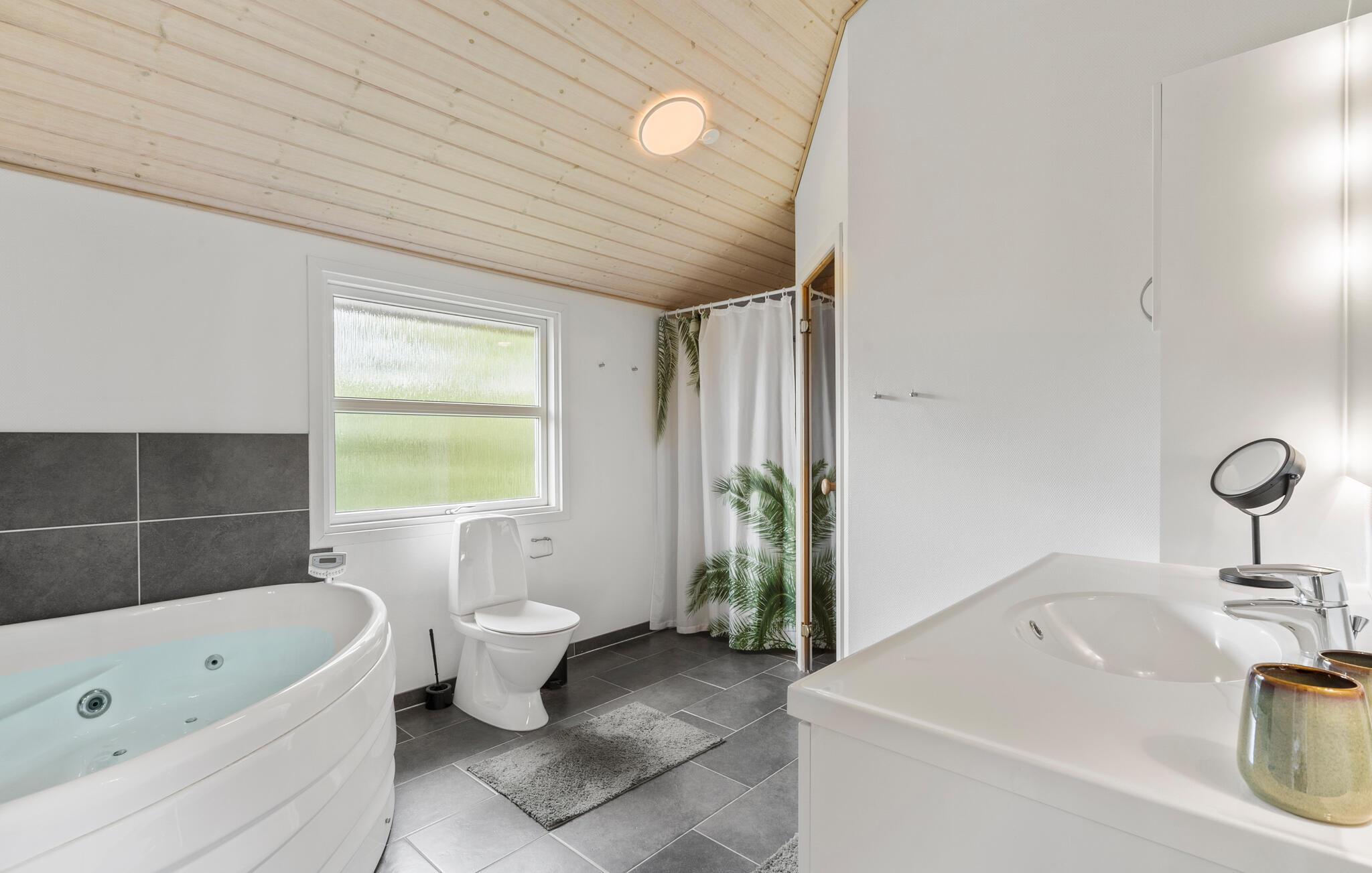 Dette innbydende feriehuset i enden av en rolig blindvei tilbyr deg en ideell symbiose av stil og hygge. Den lyse og smakfulle innredningen skaper en innbydende atmosfære som gjør at du umiddelbart vil føle deg vel. Det romslige kjøkkenet ligger i åpen forbindelse med stuen, slik at du alltid kan være i selskap med dem du er glad i. Vedovnen i stuen sprer koselig varme og kan nytes fra både sofaen og kjøkkenet. Slapp godt av i boblebadbadstuen.