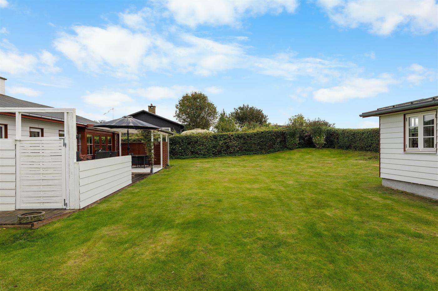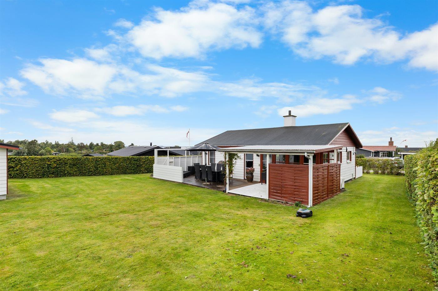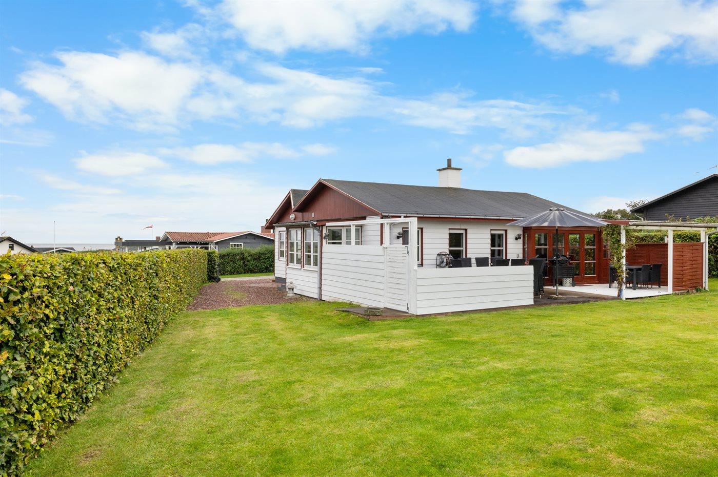 Ferieboligen er beliggende på en 665 m² stor anlagt have. Avstand til hav er 200 m. Det er en badebro i nærheten. Nærmeste butikk ligger i en avstand på 7700 m. Til ferieboligen hører åpent terrasseareal. I tillegg er det overdekket terrasse. Det er grill til rådighet. P-plass ved huset.