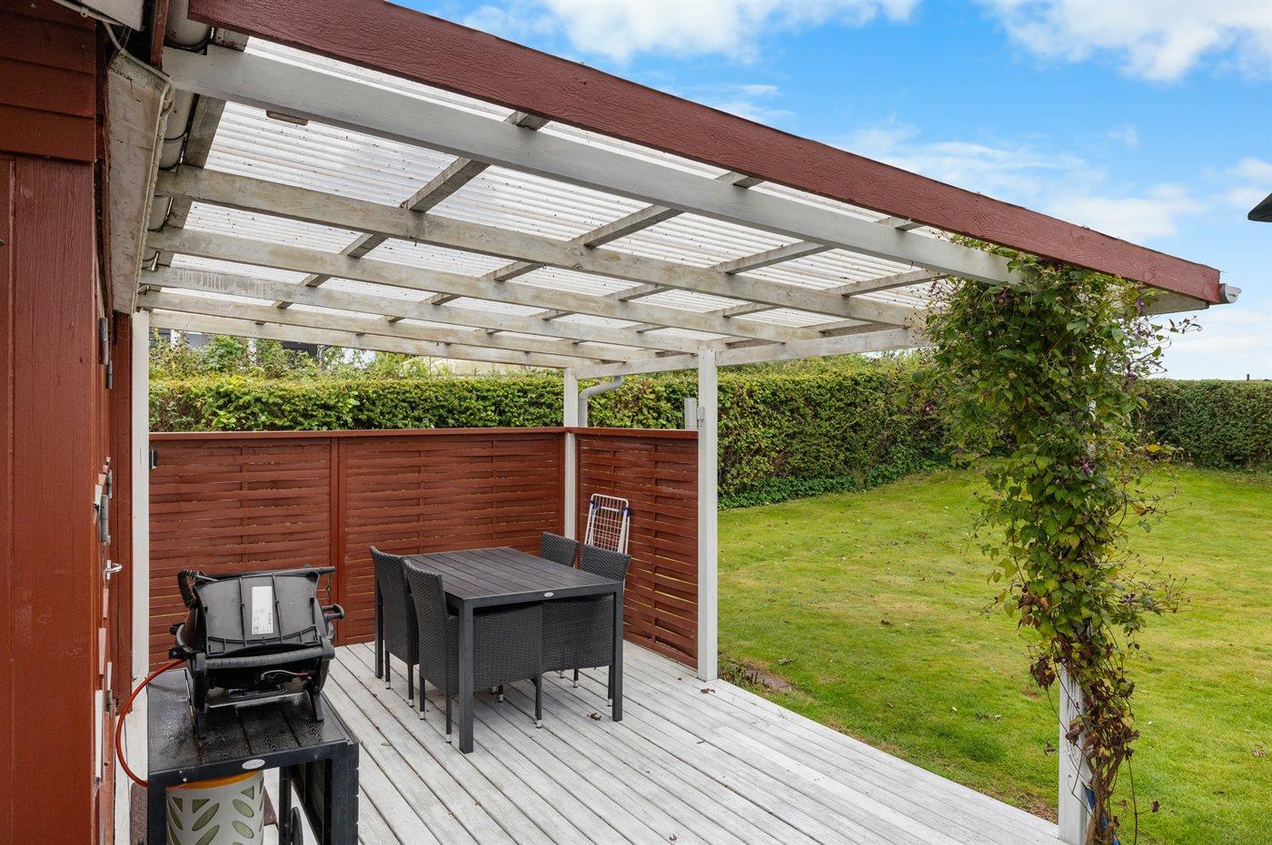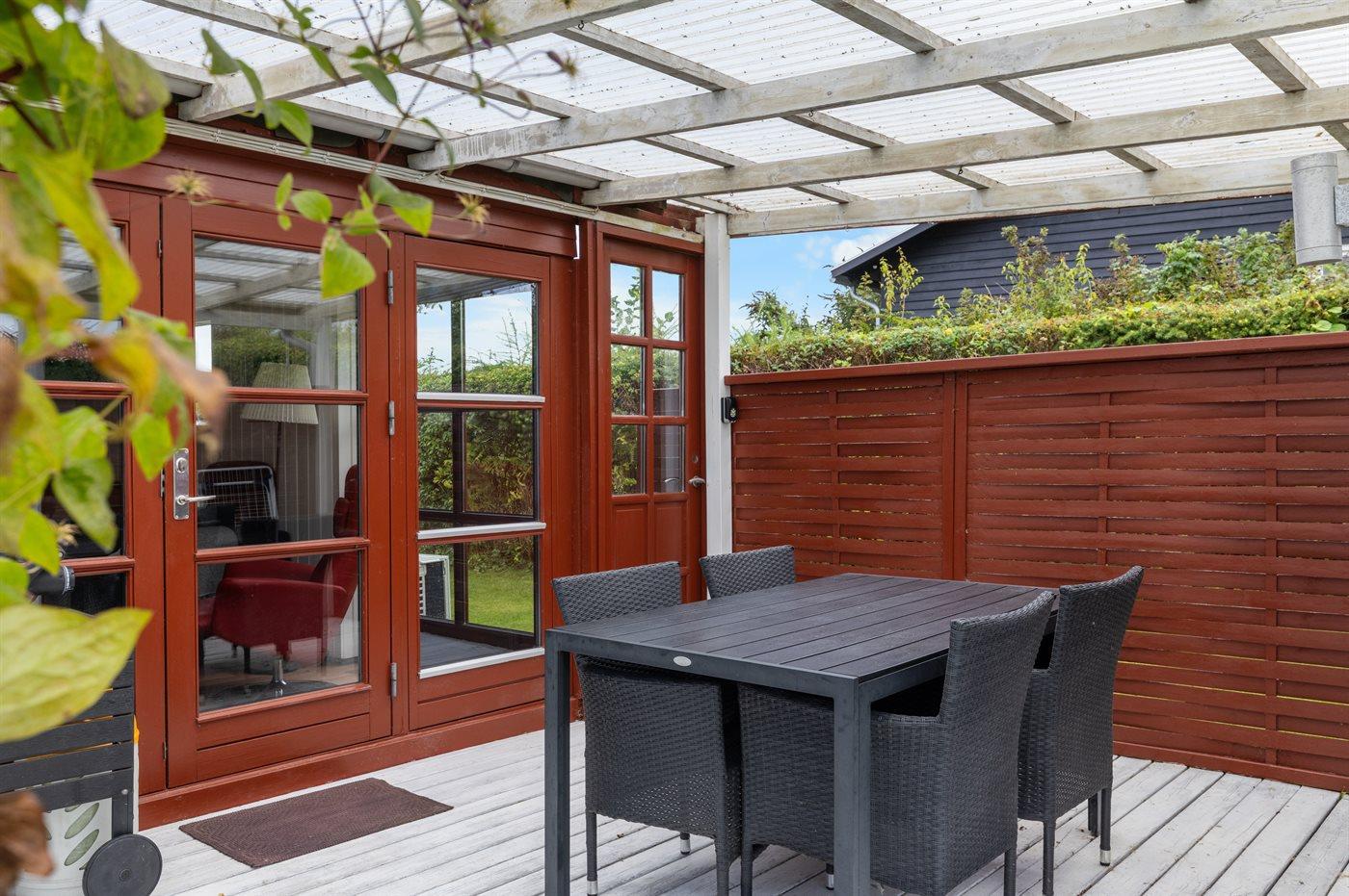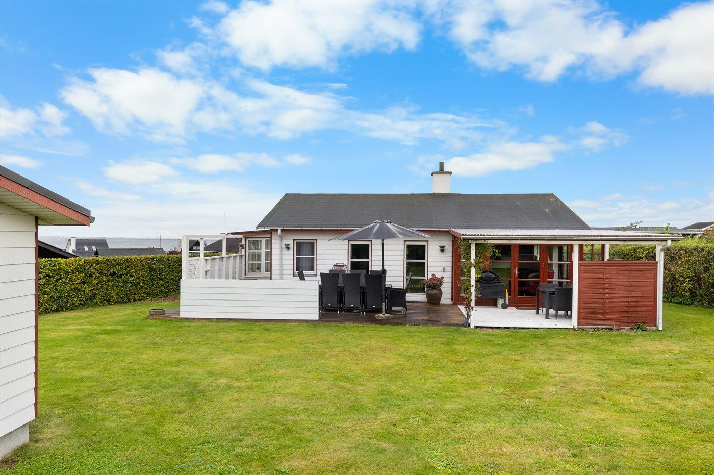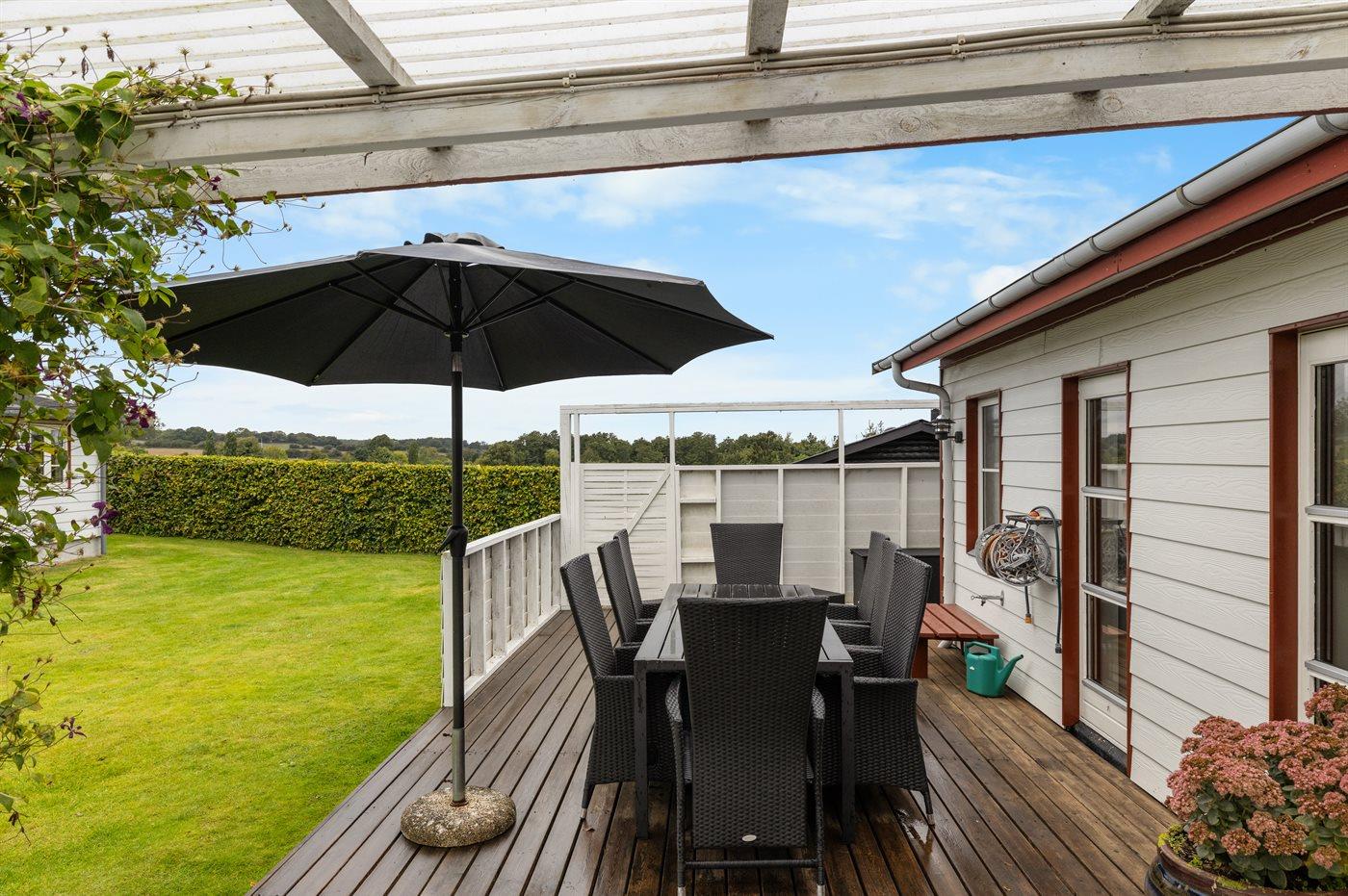 Ferieboligen er beliggende på en 665 m² stor anlagt have. Avstand til hav er 200 m. Det er en badebro i nærheten. Nærmeste butikk ligger i en avstand på 7700 m. Til ferieboligen hører åpent terrasseareal. I tillegg er det overdekket terrasse. Det er grill til rådighet. P-plass ved huset.