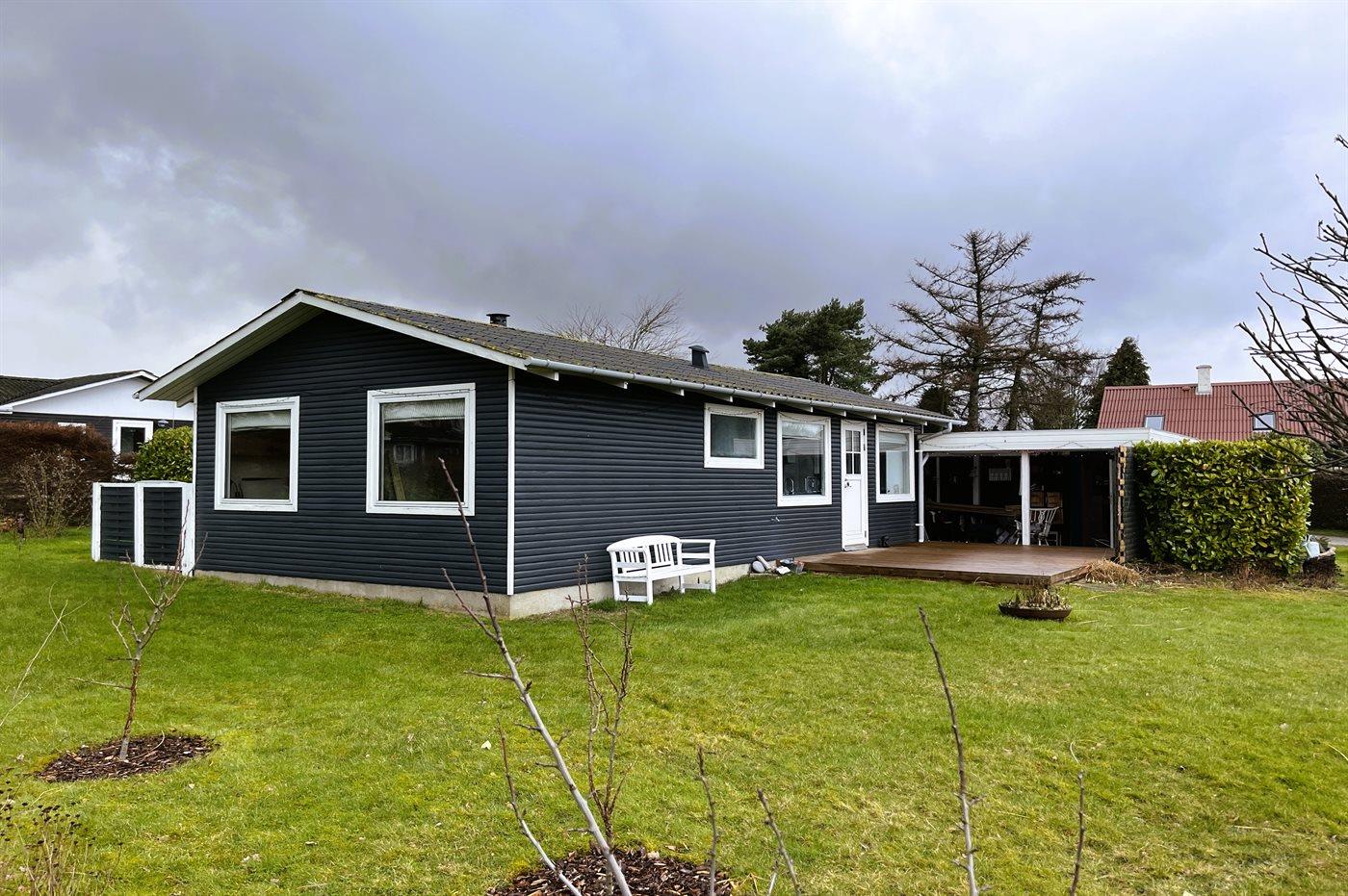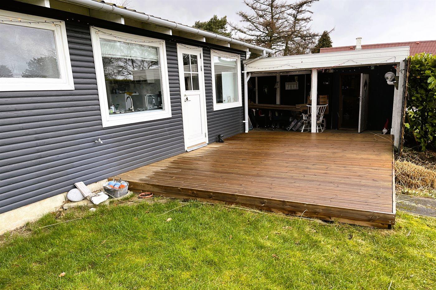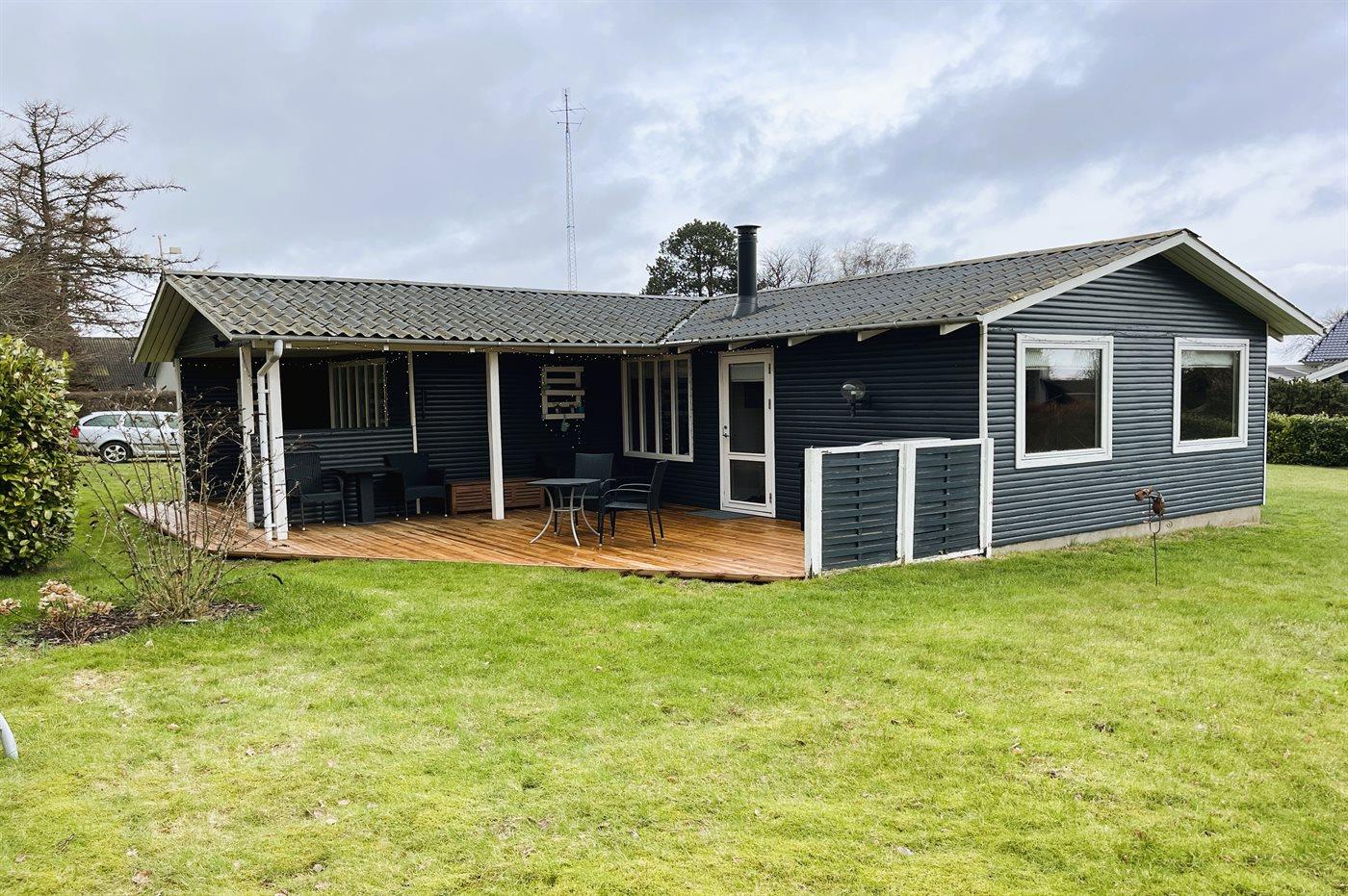 Ferieboligen er beliggende på en 1167 m² stor anlagt have. Avstand til hav er 120 m. Det er en badebro i nærheten. Nærmeste butikk ligger i en avstand på 6750 m. Golfbane i en avstand på 5700 m. Til ferieboligen hører åpent terrasseareal. I tillegg er det overdekket terrasse. Trampoline. Det er grill til rådighet. P-plass ved huset.