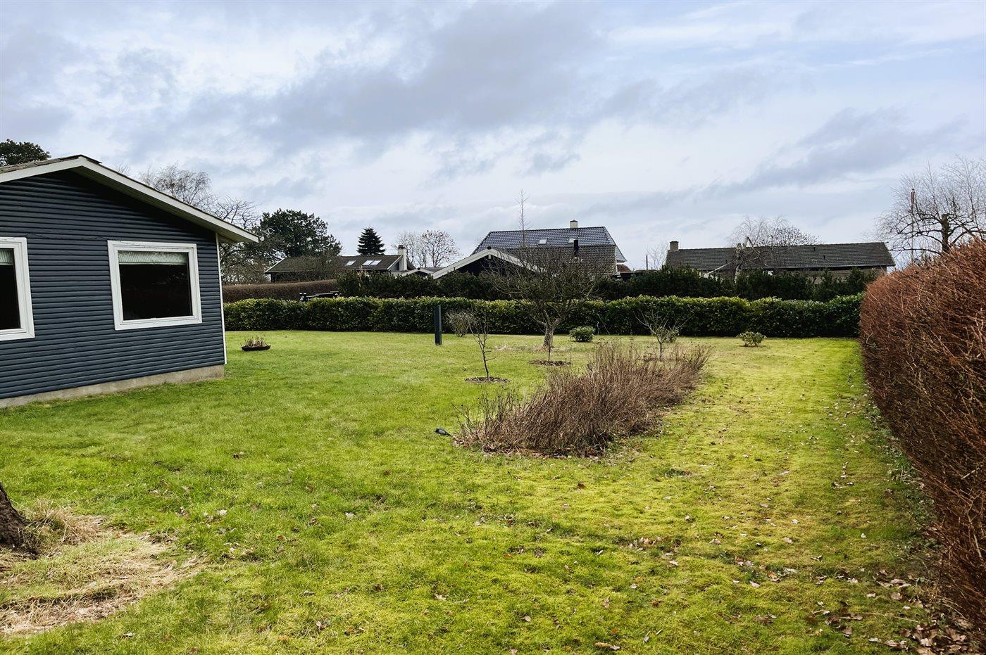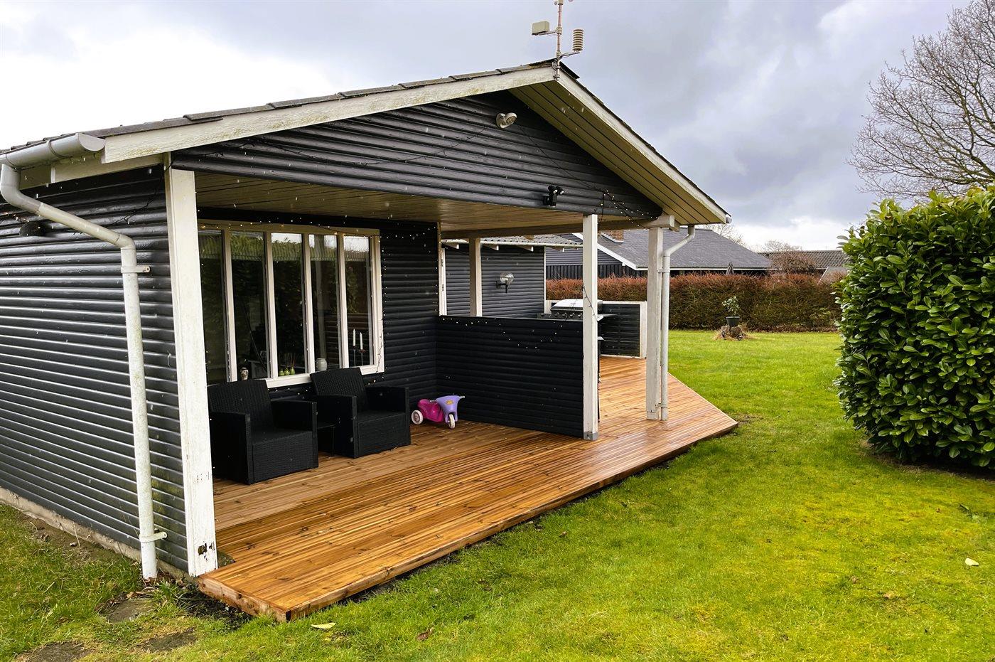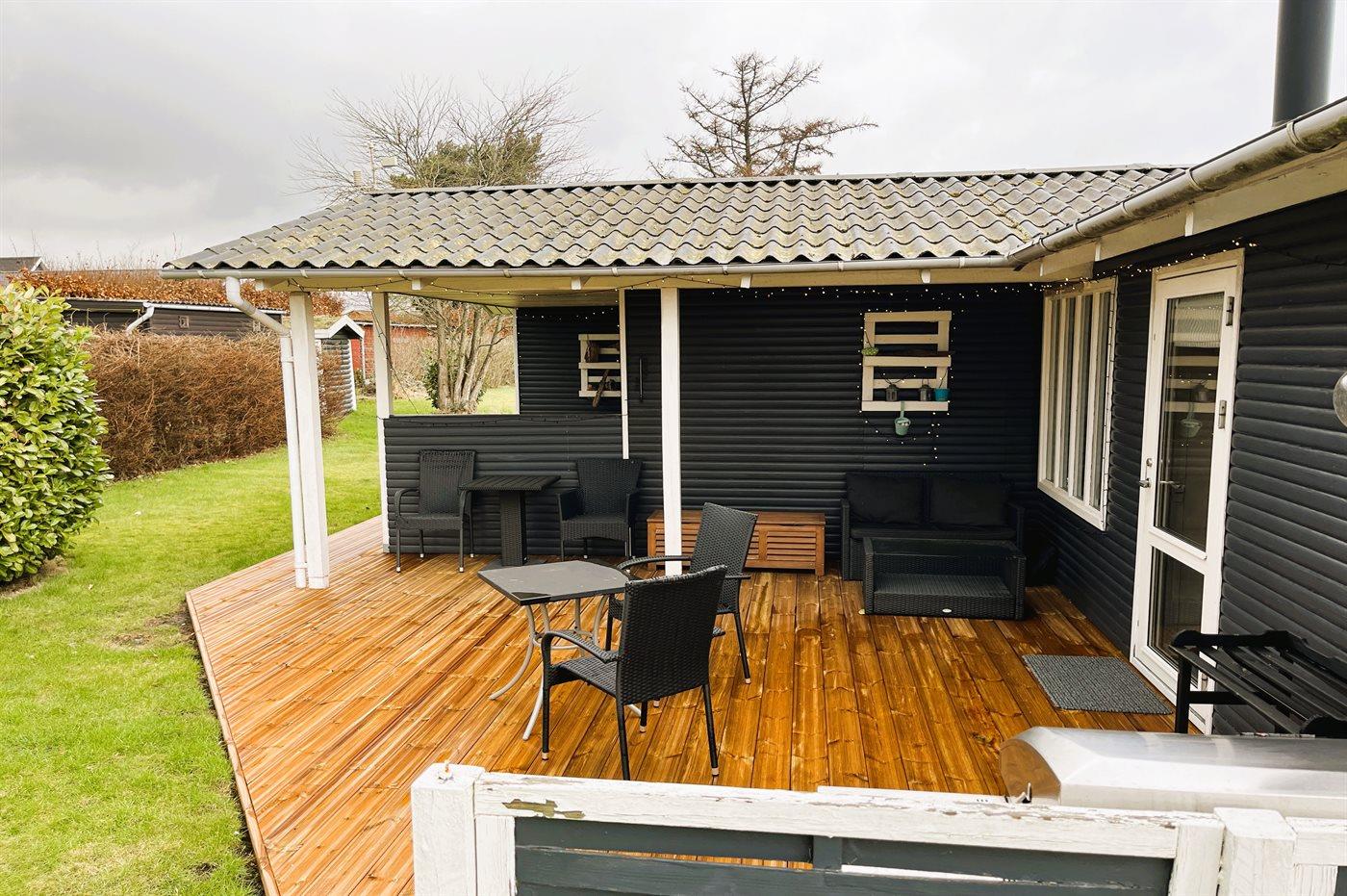 Ferieboligen er beliggende på en 1167 m² stor anlagt have. Avstand til hav er 120 m. Det er en badebro i nærheten. Nærmeste butikk ligger i en avstand på 6750 m. Golfbane i en avstand på 5700 m. Til ferieboligen hører åpent terrasseareal. I tillegg er det overdekket terrasse. Trampoline. Det er grill til rådighet. P-plass ved huset.