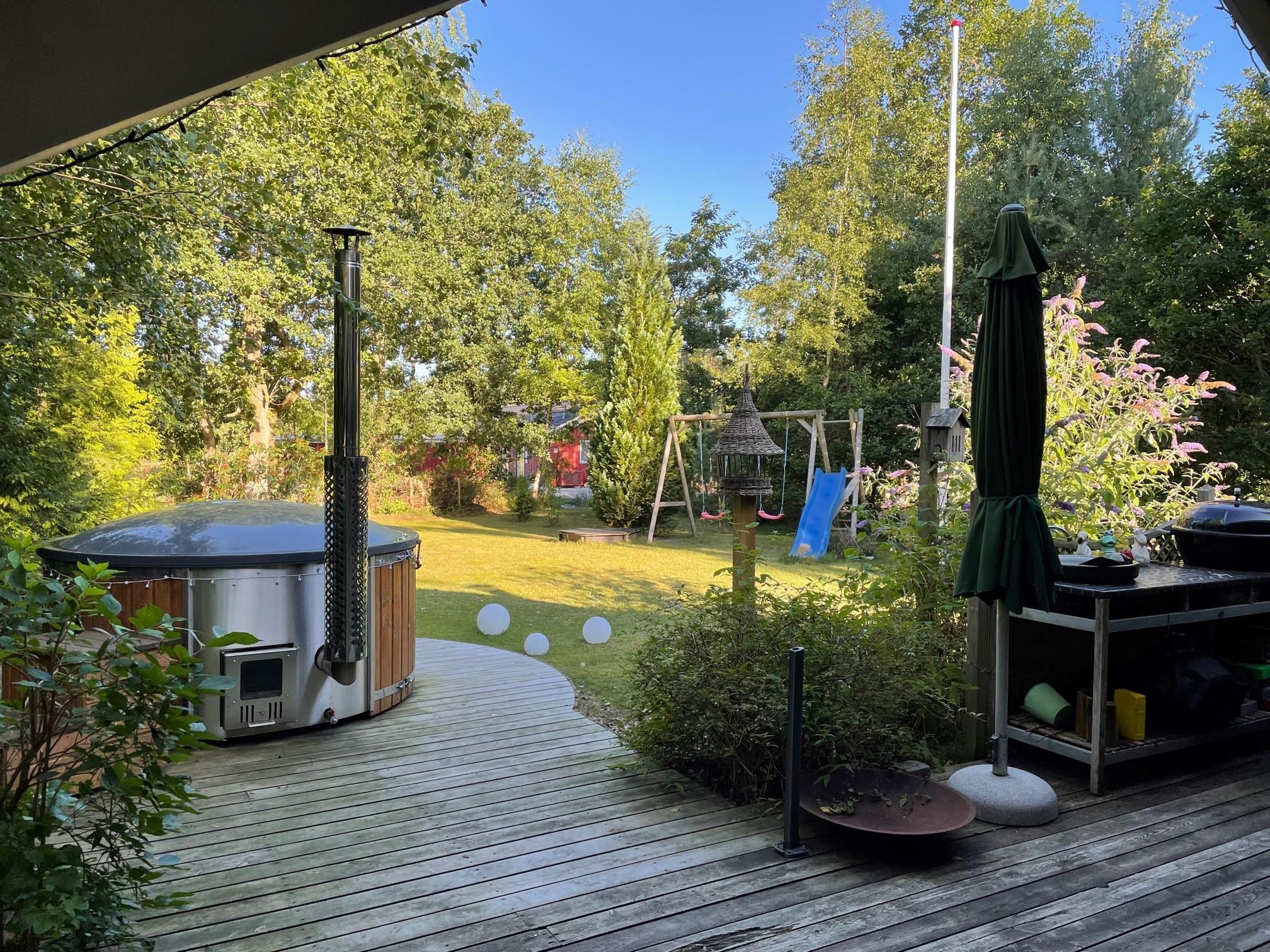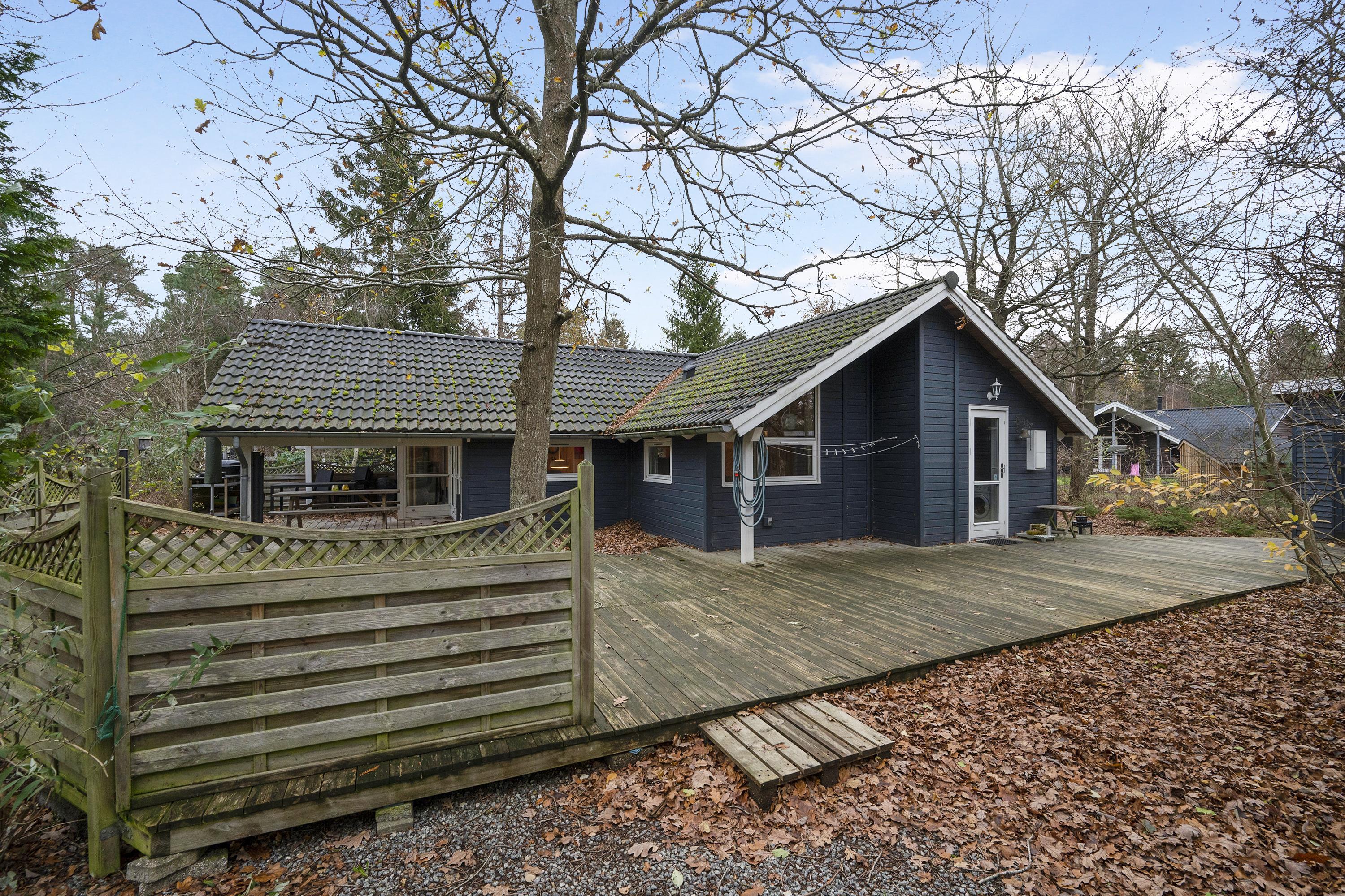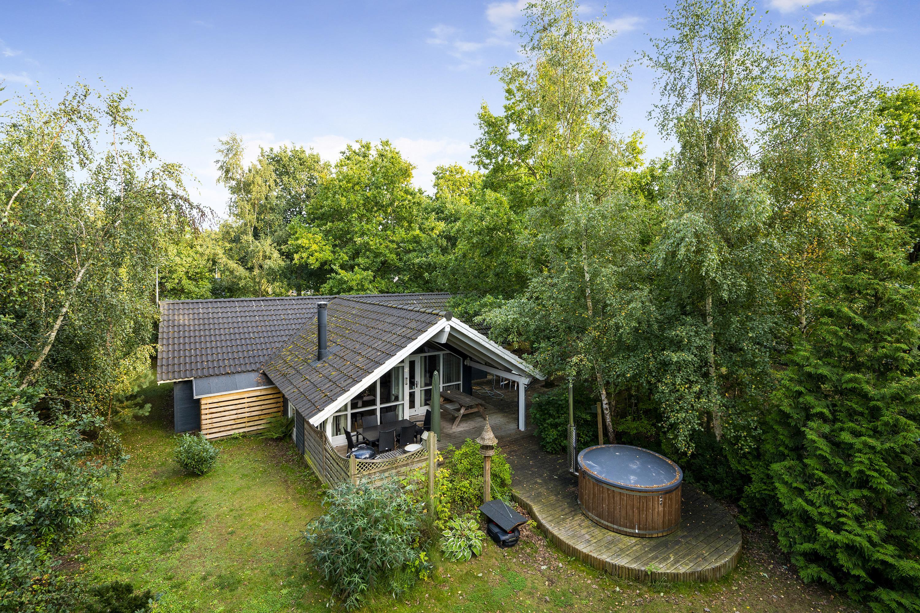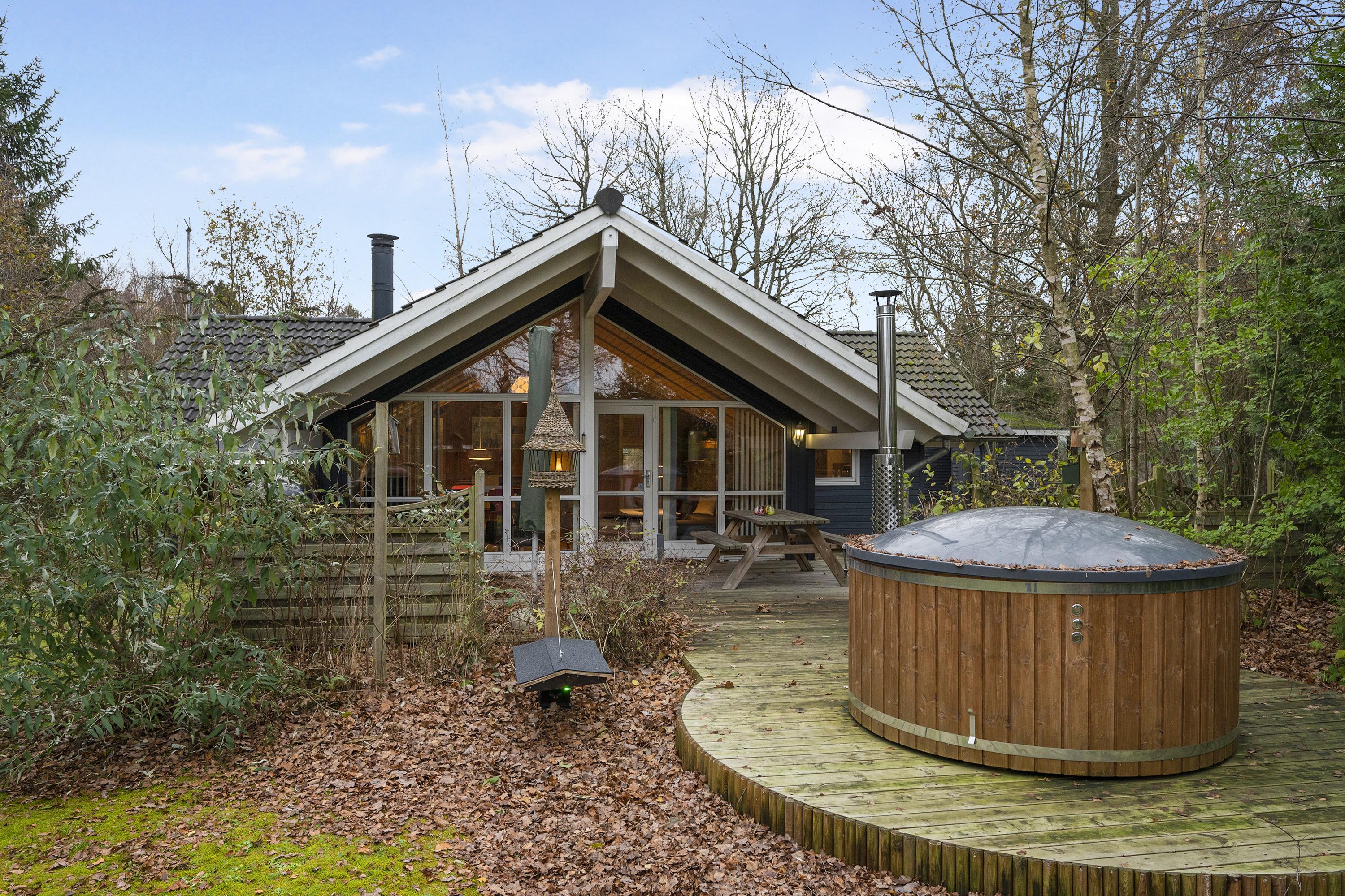 In the heart of the beautiful nature of Djursland, you will find this lovely and well-maintained holiday home. The house features an entrance/hallway with a washing machine and access to a guest toilet. A cozy, well-furnished living room with a fireplace. From here, there is access to a lovely covered terrace with garden furniture. Connected to the living room is the delightful kitchen, which includes a dishwasher. The house has sleeping arrangements spread across 3 beautiful bedrooms, all with double beds. One of the rooms also has a bunk bed. A stylish bathroom with a shower and underfloor heating. For smaller guests, there is a high chair and a crib. The house has internet access. It is situated on a lovely plot with a lawn, and here you will also find a wonderful hot tub that can be enjoyed in both summer and winter. About 600 meters from the house, there is a train station/stop for the light rail, making it easy to travel to larger cities such as Grenaa and Aarhus.