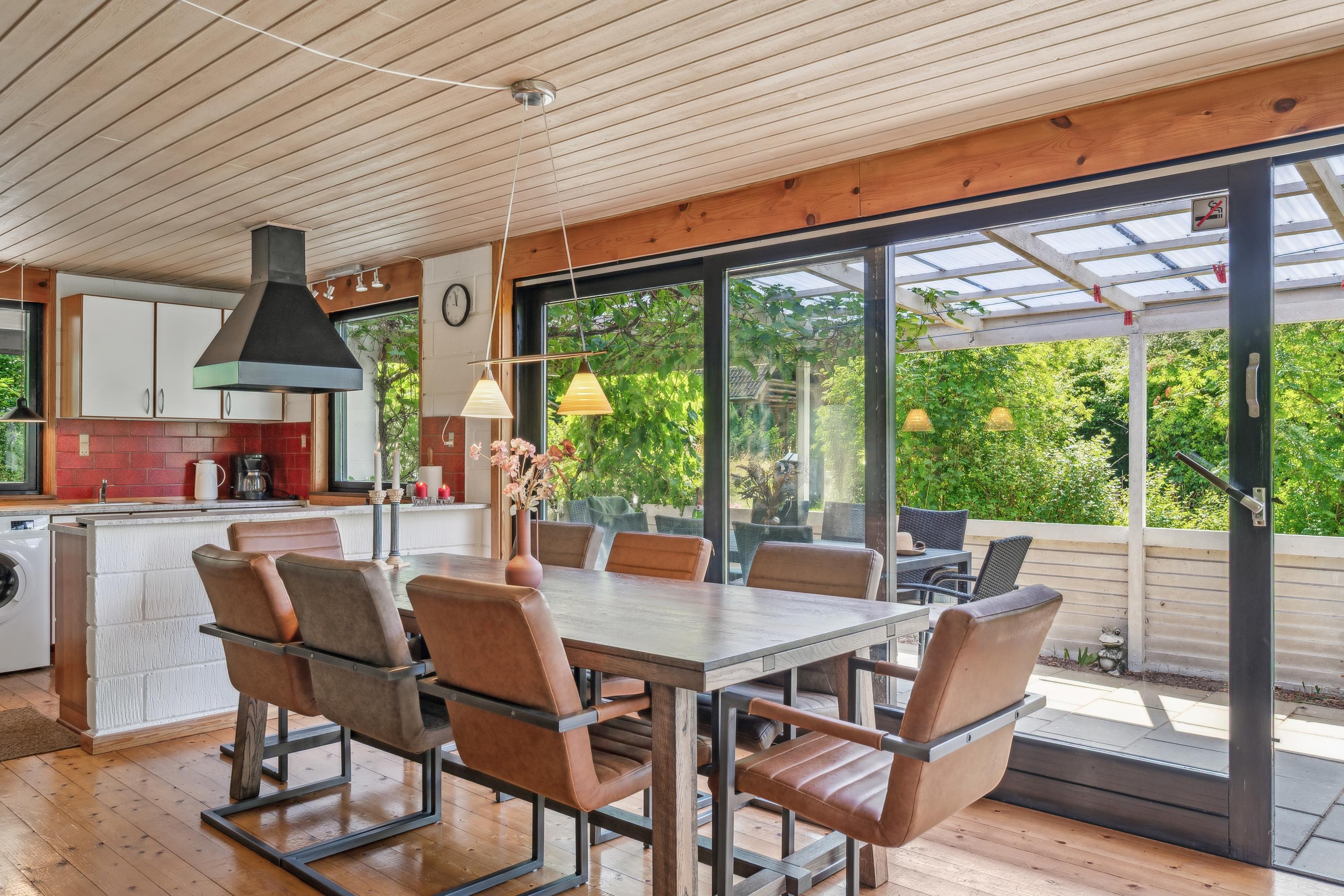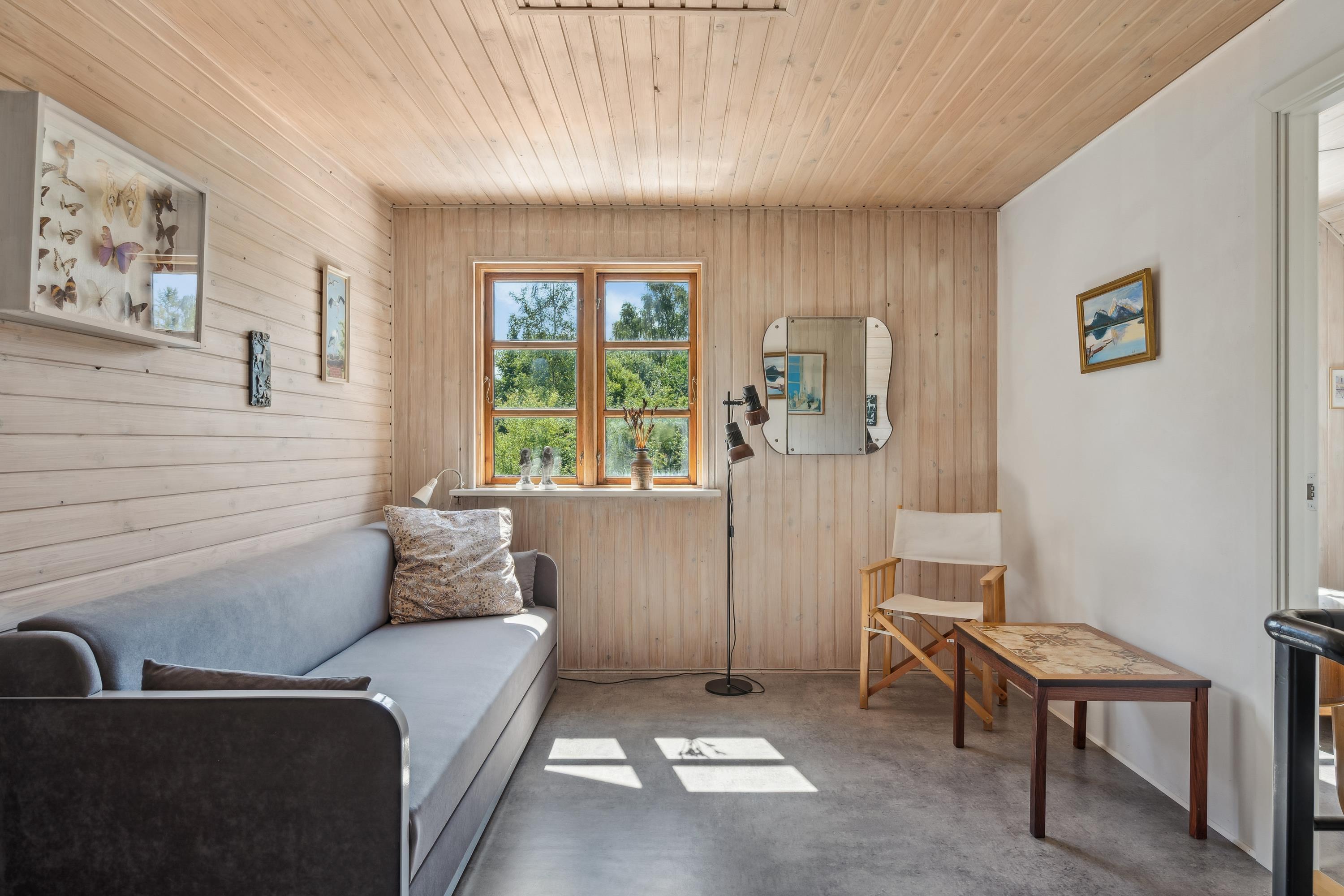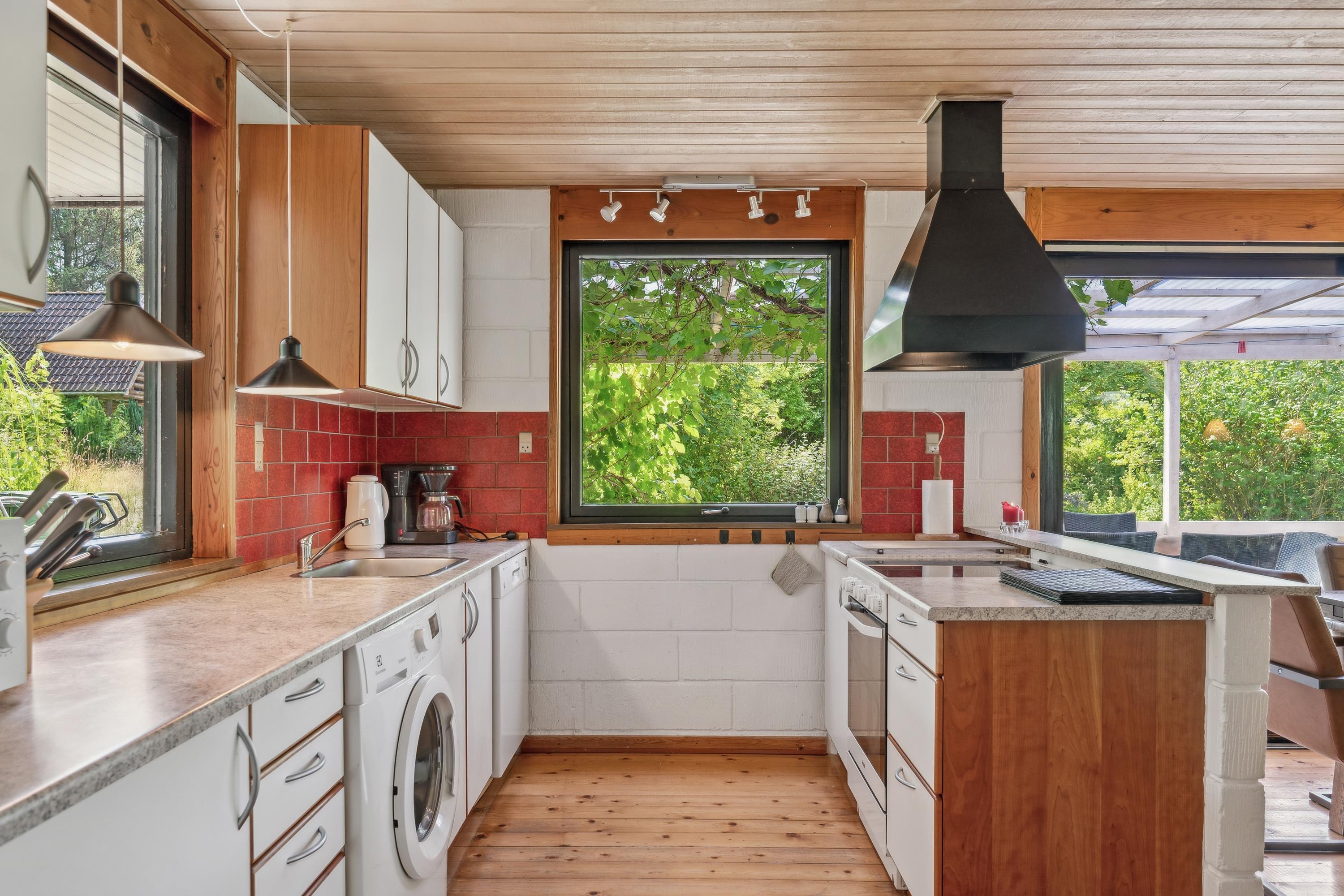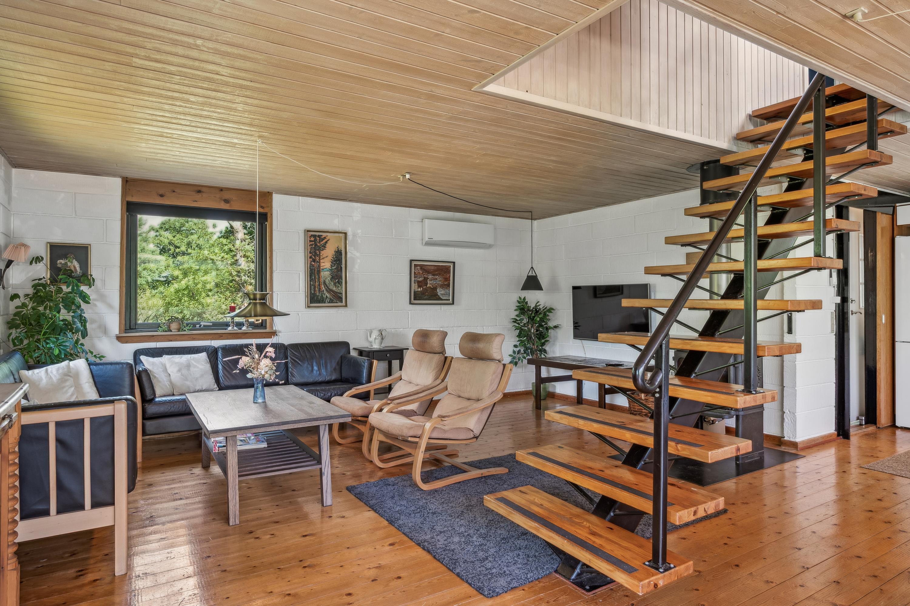 In peaceful and scenic surroundings on Djursland, you'll find this older yet charming holiday home spread over two levels. The ground floor offers a cosy living room with a wood-burning stove and heat pump, and direct access to a covered terrace with garden furniture. Adjacent to the living room is a functional kitchen equipped with, among other things, a dishwasher. Nice bathroom with shower. The sleeping areas are located on the first floor. The house is situated on a large plot with lawn and trees – perfect for play and relaxation. The area is surrounded by forests and fields rich in wildlife. It’s just a 10-minute drive to the train station in Kolind, where you can catch the light rail to either Grenaa or Aarhus.