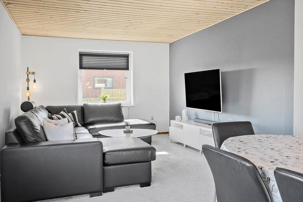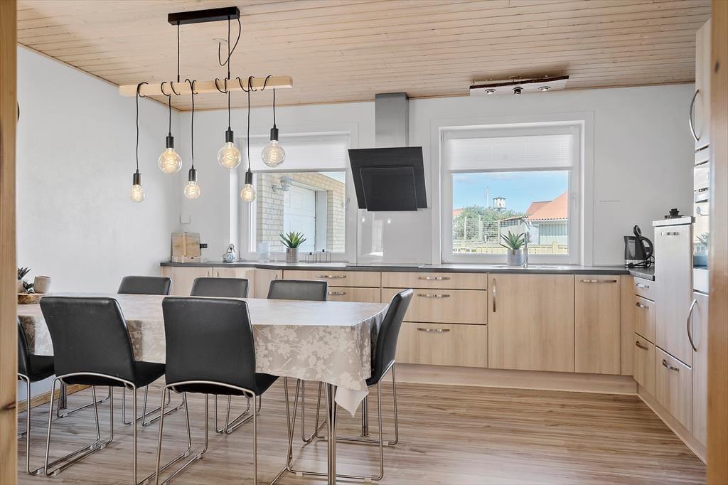 Freuen Sie sich auf einen herrlichen Urlaub in diesem charmanten, renovierten Ferienhaus in Thorsminde. Das Haus verfügt über eine geräumige und gut ausgestattete Küche, in der Sie köstliche Mahlzeiten zubereiten und gemeinsam am Esstisch genießen können. Wenn das Wetter nach drinnen lockt, können Sie sich zu einer Partie Billard am Billardtisch versammeln oder einfach vor dem TV entspannen. Das Badezimmer ist gepflegt und funktional, und im Eingangsbereich stehen sowohl Waschmaschine als auch Trockner zur Verfügung – besonders praktisch für längere Aufenthalte. Ihre Hunde sind ebenfalls herzlich willkommen (gegen eine geringe Gebühr), sodass die ganze Familie zusammen sein kann. Hier erleben Sie einen Urlaub, in dem Entspannung, Zusammensein und Komfort Hand in Hand gehen.