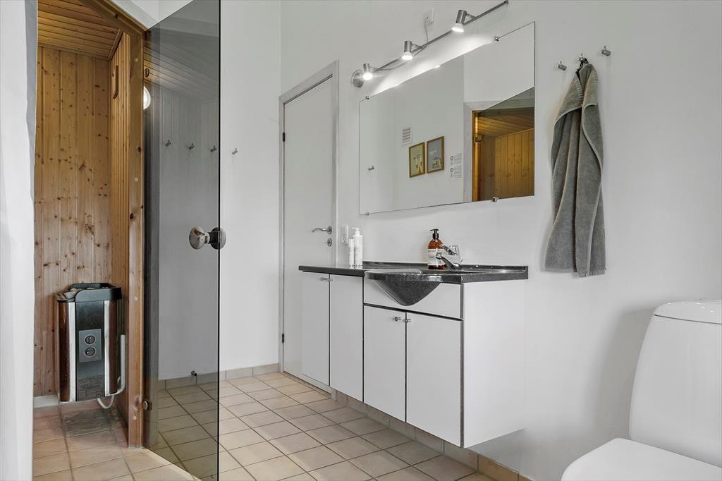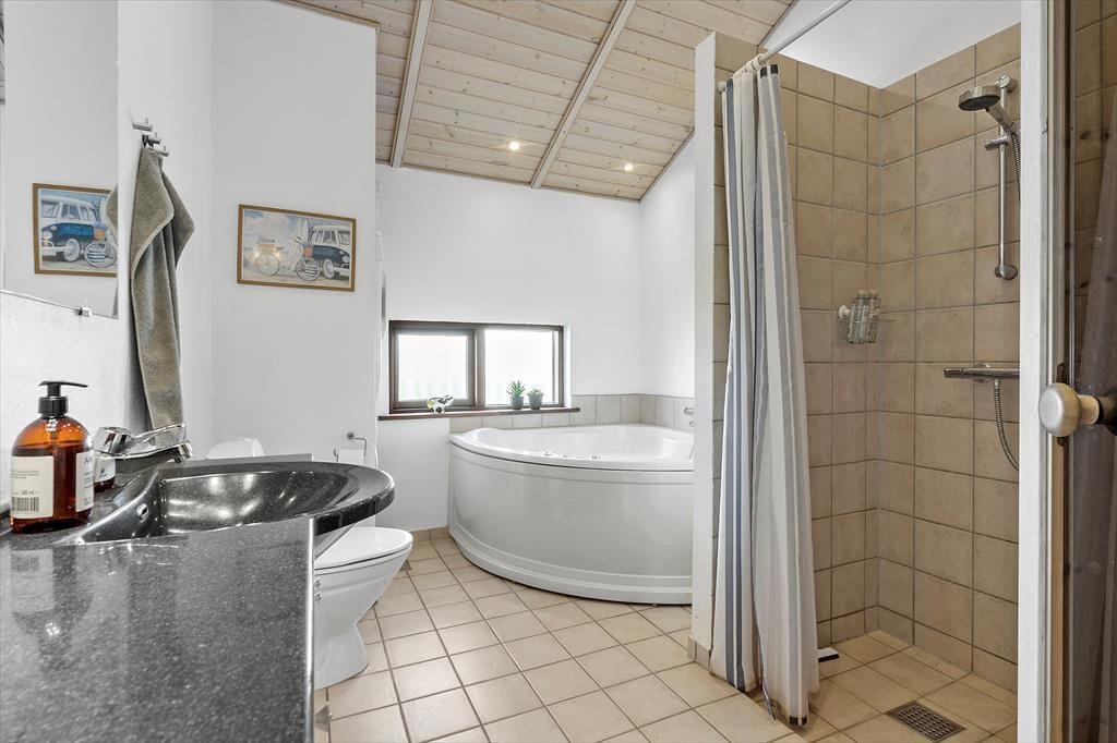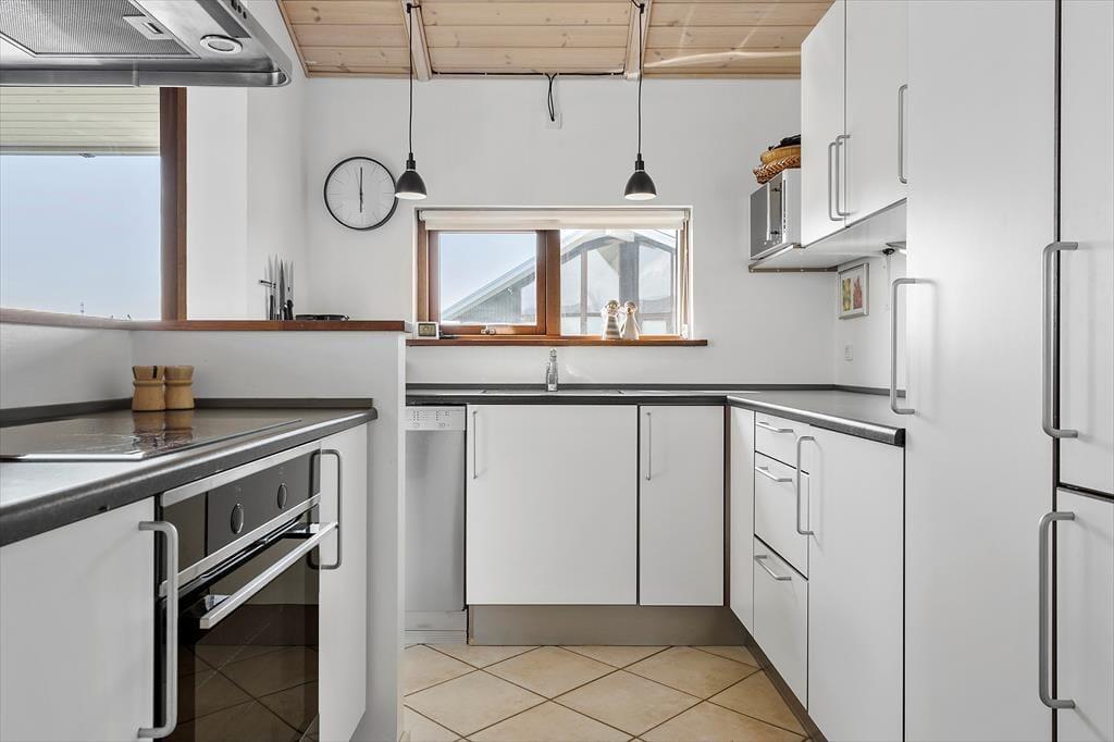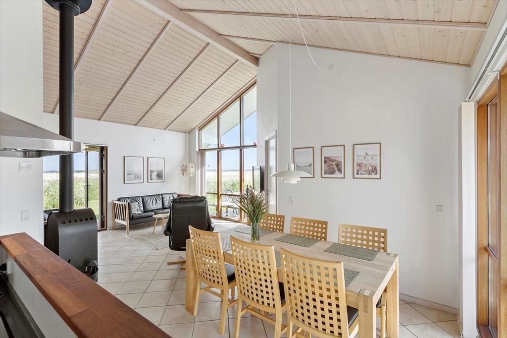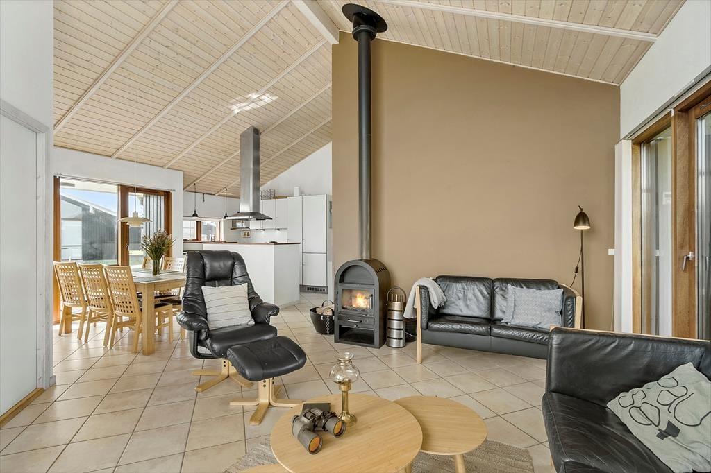 Freu dich auf dieses wunderbar helle Ferienhaus mit hohen Decken, das sich angenehm geräumig präsentiert. Der große, offen kombinierte Küchen-, Wohn- und Essbereich lädt zu vielen gemütlichen Stunden im Kreise deiner Lieben ein. Ihr werdet in diesem Raum gemeinsam köstliche Mahlzeiten zubereiten, vergnügte Spieleabende am Esstisch verleben und es euch in Ruhe auf dem Sofa gemütlich machen. Für ein Maximum an Gemütlichkeit und Wärme sorgt der Kaminofen. Die Fenster eröffnen einen fantastischen Panoramaausblick auf den Nissum Fjord. Bei diesem Ferienhaus erlebst und genießt du die beeindruckende Natur ringsum zu jeder Zeit- egal, ob die Sonne hoch am Himmel steht oder es draußen regnet und stürmt. Nach einem langen erlebnisreichen Urlaubstag an der frischen Luft verwöhnen dich die Sauna und der tolle Whirlpool im Badezimmer mit echtem Wellnessflair.