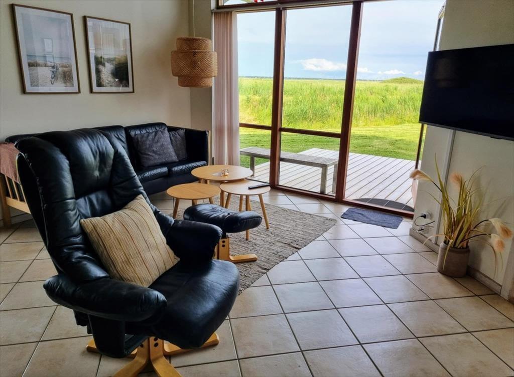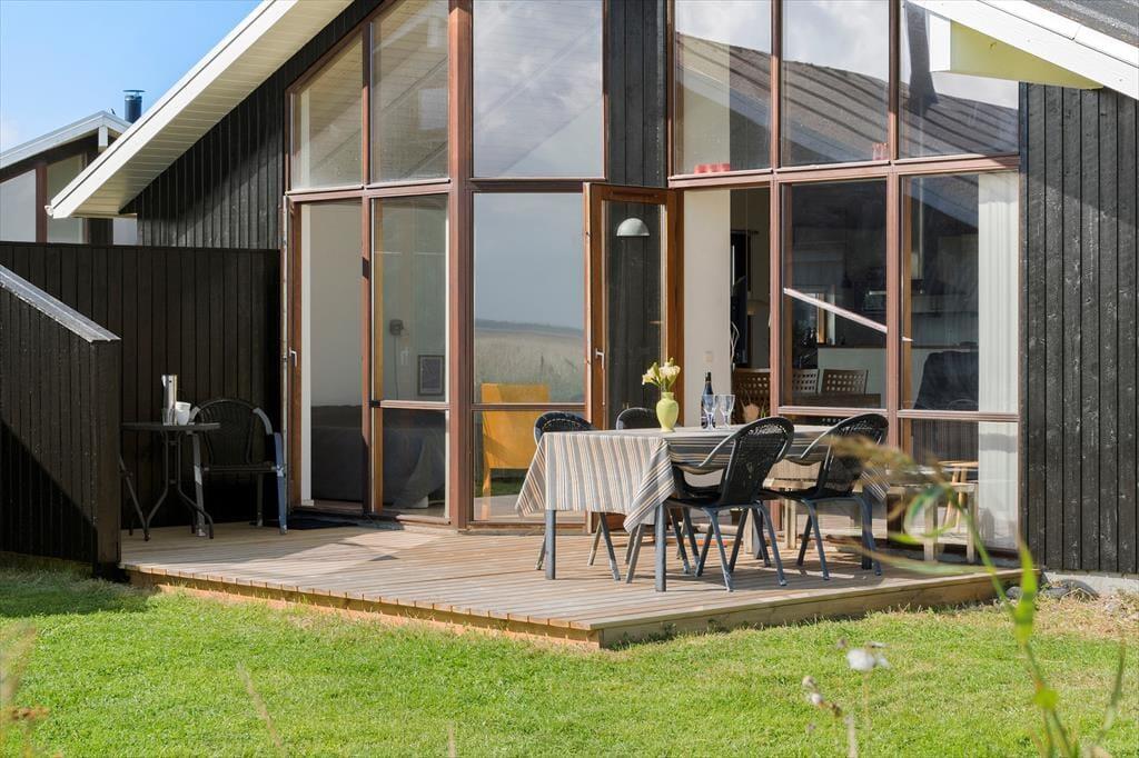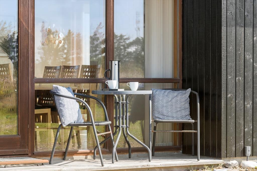 Ruhige Momente am Morgen mit einem frischen Becher Kaffee genießt du am besten auf der schönen Holzterrasse. Die Terrasse begeistert mit einem herrlichen Ausblick auf den Nissum Fjord. Wenn du zu den Frühaufstehern gehörst, erlebst du zauberhafte Sonnenaufgänge über dem Wasser, bewunderst die artenreiche Vogelwelt und die schöne Landschaft, die sich zu allen Seite erstreckt. Gegen Abend erlebst du, wie die in der Ferne untergehende Sonne den Himmel in verschiedenste Rot- und Orangetöne taucht. Beachte bitte, dass das Terrain vor deinem Haus - also in östlicher Richtung - unter Naturschutz steht und es daher nicht möglich ist, das Fjordufer vom Haus aus zu erreichen.