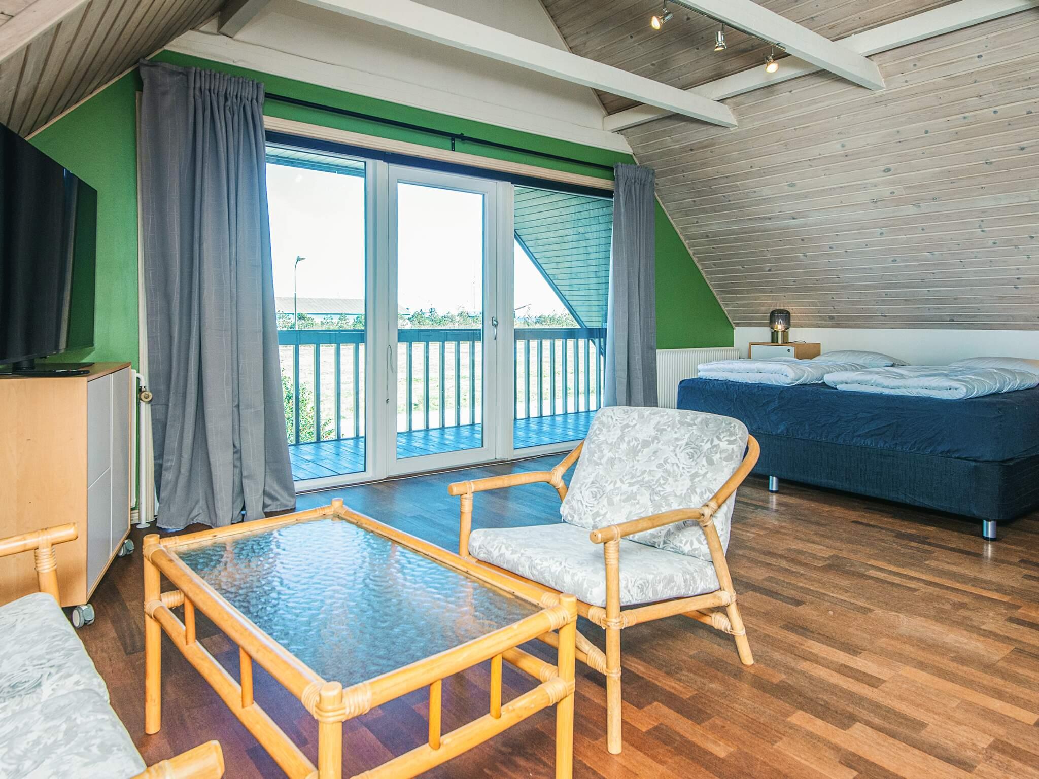 På første sal er der fire soveværelser, hvoraf det ene har to enkeltsenge, to værelser med dobbeltsenge, og et værelse med dobbeltseng og en sovesofa til to personer med tilhørende altan, hvor du kan nyde morgenkaffen, mens du nyder udsigten over området – dette soveværelse har også et tv med tyske og gratis danske kanaler.