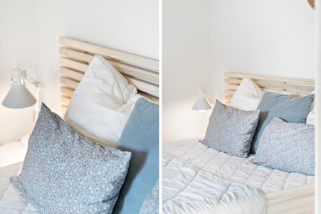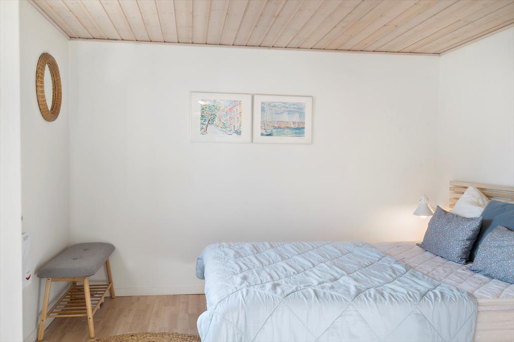 Das 72 m² große Holzhaus für vier Personen wurde im Jahr 2021 renoviert. Der Einrichtungsstil ist hell und romantisch. Die komfortable Möblierung und der Kaminofen sorgen für bestes Ferienhausflair. Wohnraum und Küche sind offen miteinander verbunden. Der offene Raum verfügt über große Fenster, die einen schönen Tageslichteinfall gewähren und Sie beim Kochen, beim Entspannen auf dem Sofa und während vergnügter Spielstunden am Esstisch mit Ausblick auf das grüne Grundstück verwöhnen. Zwei Schlafräume mit je einem Doppelbett und ein Schlafraum mit einem Etagenbett stehen für Sie bereit. Das Badezimmer ist mit einer Duschnische, einer Fußbodenheizung und einer Waschmaschine ausgestattet.