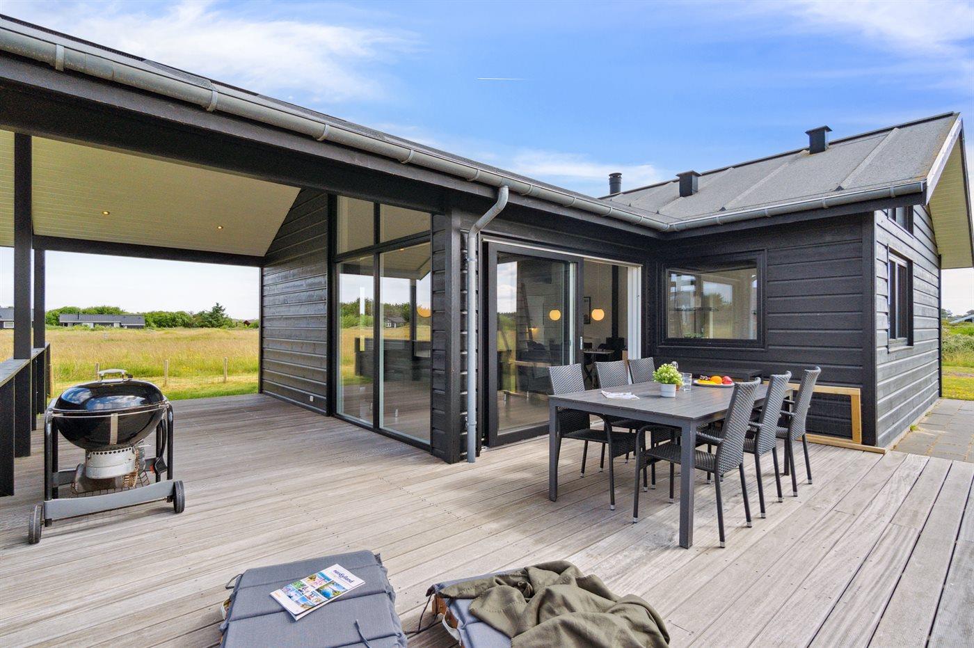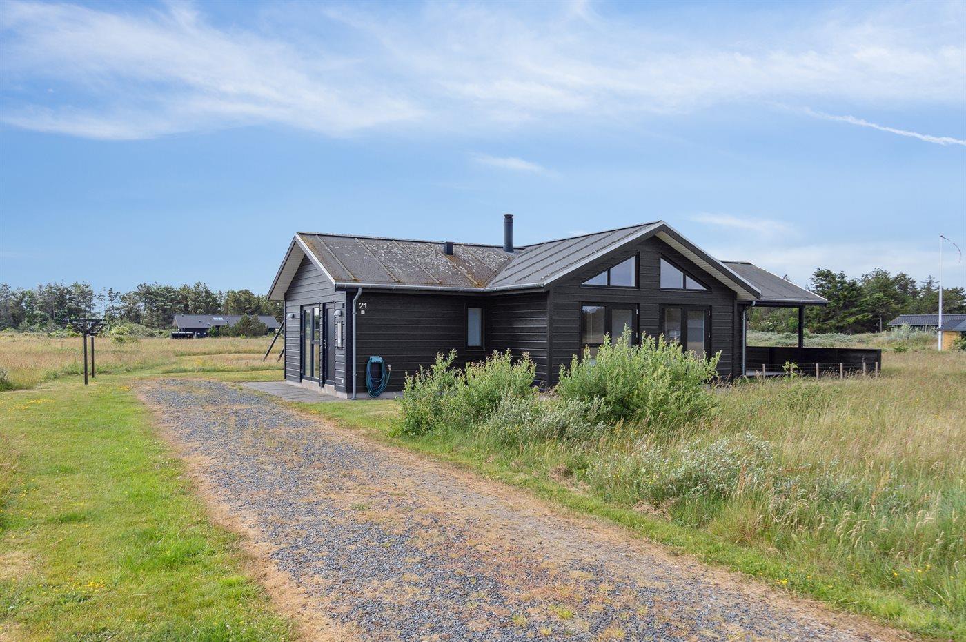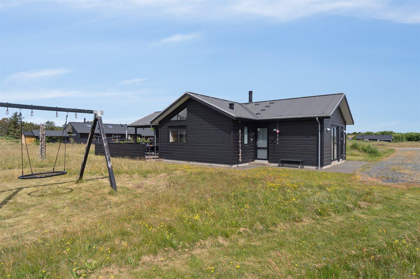 Ferieboligen er beliggende på en 2639 m² stor naturtomt. Avstand til hav er 950 m. Nærmeste butikk ligger i en avstand på 2000 m. Golfbane i en avstand på 9000 m. Til ferieboligen hører 20 m² terrasseareal. I tillegg er det 20 m² overdekket terrasse. Det er Redskapsrom. Redegynge. Det er grill til rådighet. Det er montert kontakt til lading av elbil ved huset. P-plass ved huset.