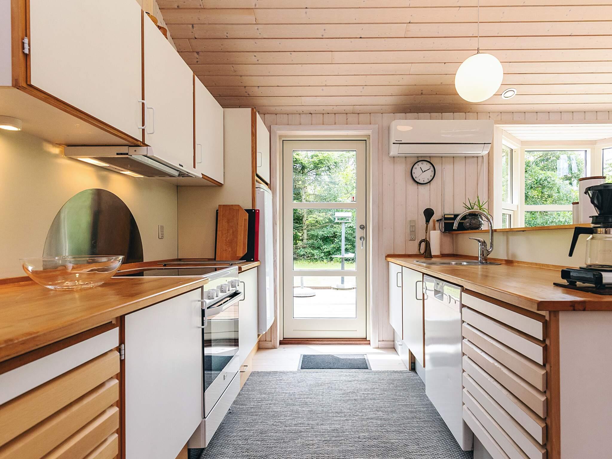 Boligens hjerte er den kombinerede stue og køkken. Her kan du tilberede måltider i det veludstyrede køkken, som omfatter keramisk kogeplade, emhætte, mikroovn, kaffemaskine og opvaskemaskine. Opholdsområdet har komfortable møbler, gratis Wi-Fi og et Smart TV til at streame dine egne tjenester. På køligere aftener kan du vælge mellem den energivenlige varmepumpe eller den traditionelle brændeovn for at holde huset varmt og indbydende. Et badeværelse med bruser, toilet, gulvvarme og vaskemaskine sikrer både komfort og praktisk. Tre soveværelser, hver med to enkeltsenge, giver fleksible sovepladser, mens en stor hems under det skrånende tag byder på to ekstra sovepladser specielt velegnet til børn.